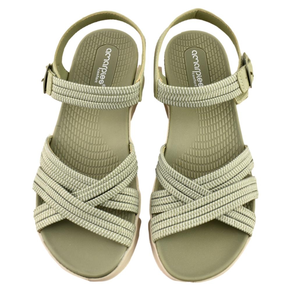 Descubre las Sandalias con cuña para mujer AMARPIES ABZ28656 en un elegante verde khaki listas para completar tu