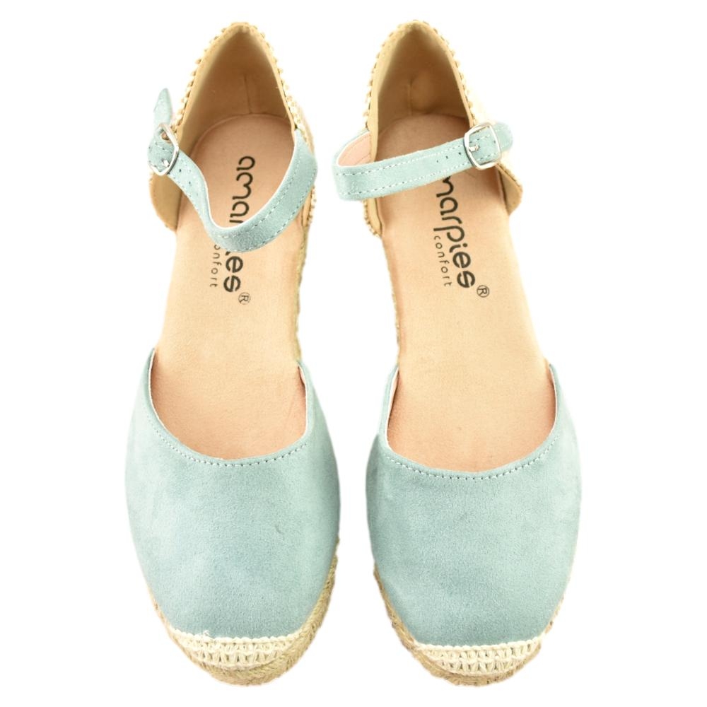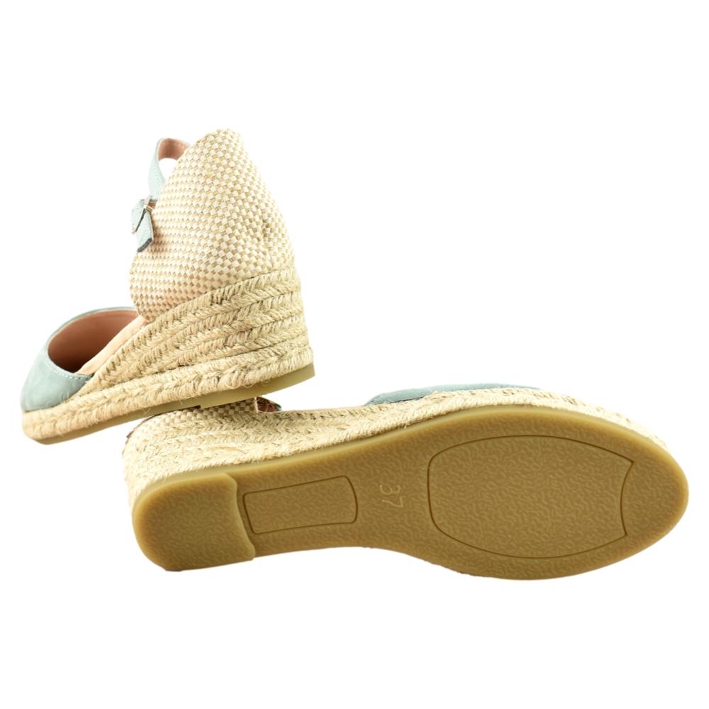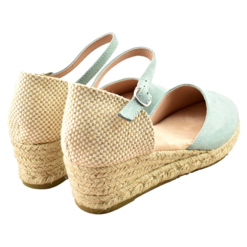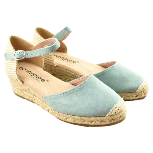 Alpargata tipo valenciana de mujer con planta acolchada de la marca Amarpies. Fabricada en material que imita la piel con efecto antelina. Pulsera al tobillo con hebilla. Cuña de 5cm de yute y suela de goma antideslizante.