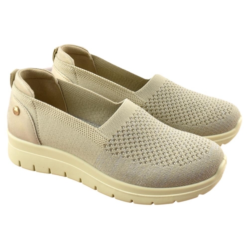 Zapato fabricado en tejido elástico adaptable muy cómodo, con plantilla acolchada y extraíble que permite cambiarla por una ortopédica si es necesario. Destaca la ligereza y flexibilidad de su piso, con cuña de aprox. 3cm. Zapato ancho que aporta confort y máxima comodidad.