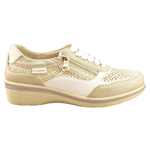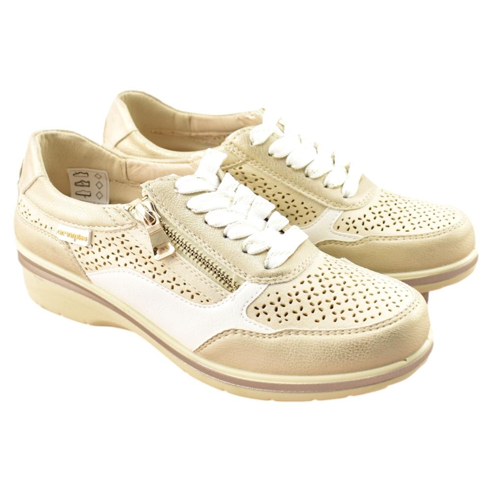 Zapato sport para mujer, realizado en combinado sintético en color arena. Cierre mediante cordones y cremallera en el lateral para facilitar el calce. Plantilla Memory Sponge que se adapta a cualquier pie y amortigua la pisada. Modelo cómodo y actual para cualquier ocasión del día.