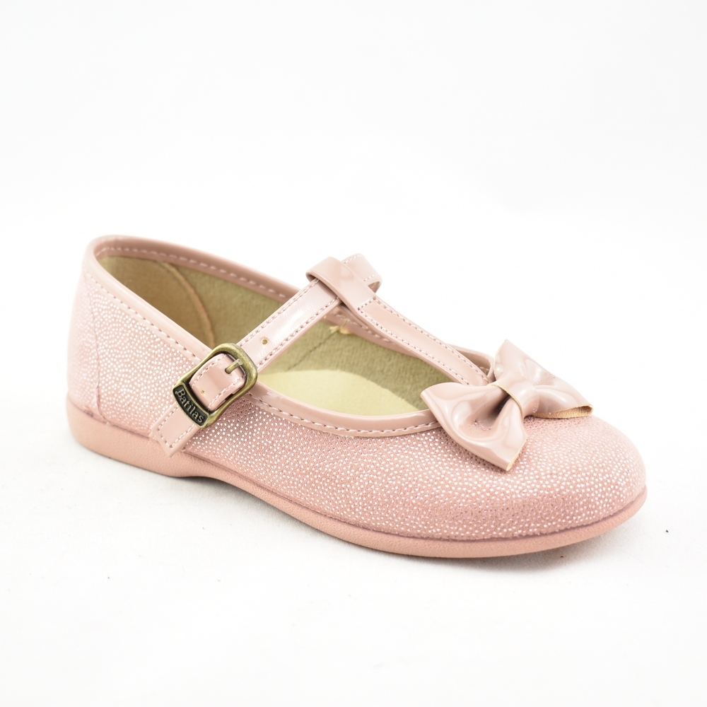 Mercedes de niña con lazo delantero y cierre de hebilla.