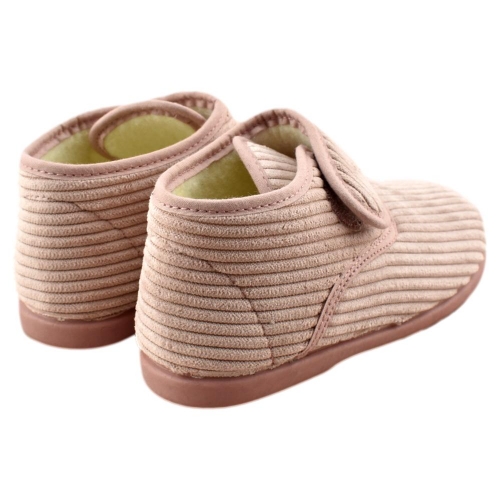 FABRICADO EN ESPAÑA. Bota de estar en casa fabricada en pana con cierre de velcro. Piso de goma flexible que permite la total movilidad del pie.