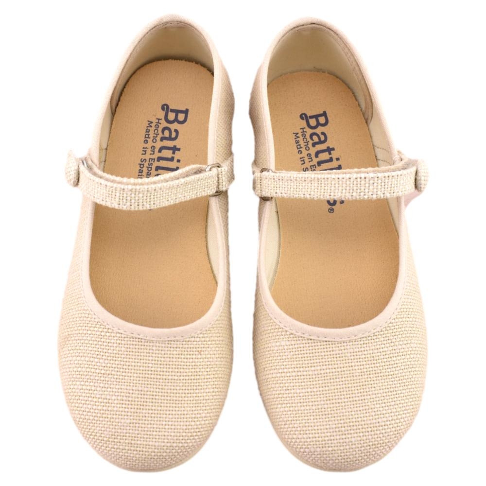 FABRICADO EN ESPAÑA. Mercedes de lona suave y transpirable con cierre de tira adhesiva. Piso de caucho muy flexible, que permite una total movilidad del pie para favorecer su correcto crecimiento. Se aconseja un lavado suave y poner a secar siempre a la sombra.