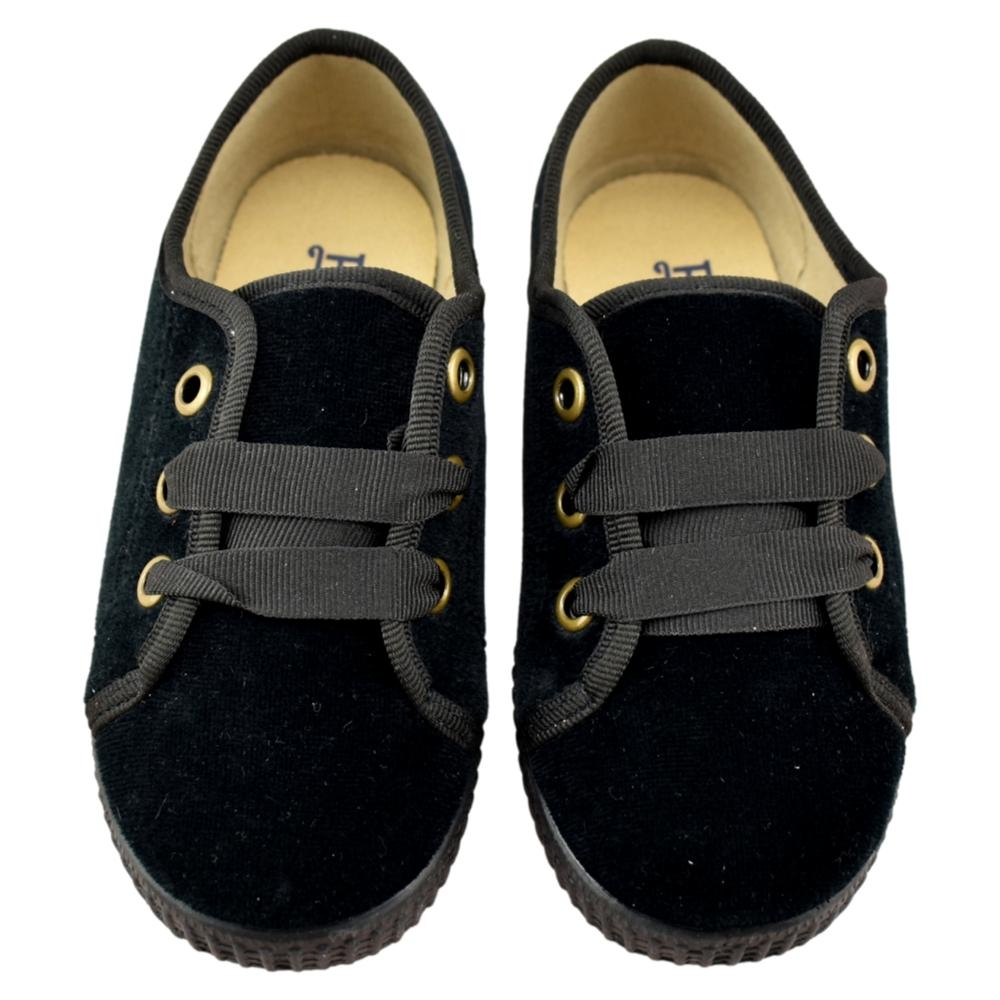 FABRICADO EN ESPAÑA. Este zapato es una opción ideal para niños y niñas que combina estilo, comodidad y calidad en un solo calzado. Fabricadas con suave terciopelo negro, estas deportivas destacan por su diseño elegante y versátil, perfectas para el uso diario o para ocasiones especiales.