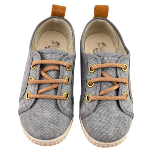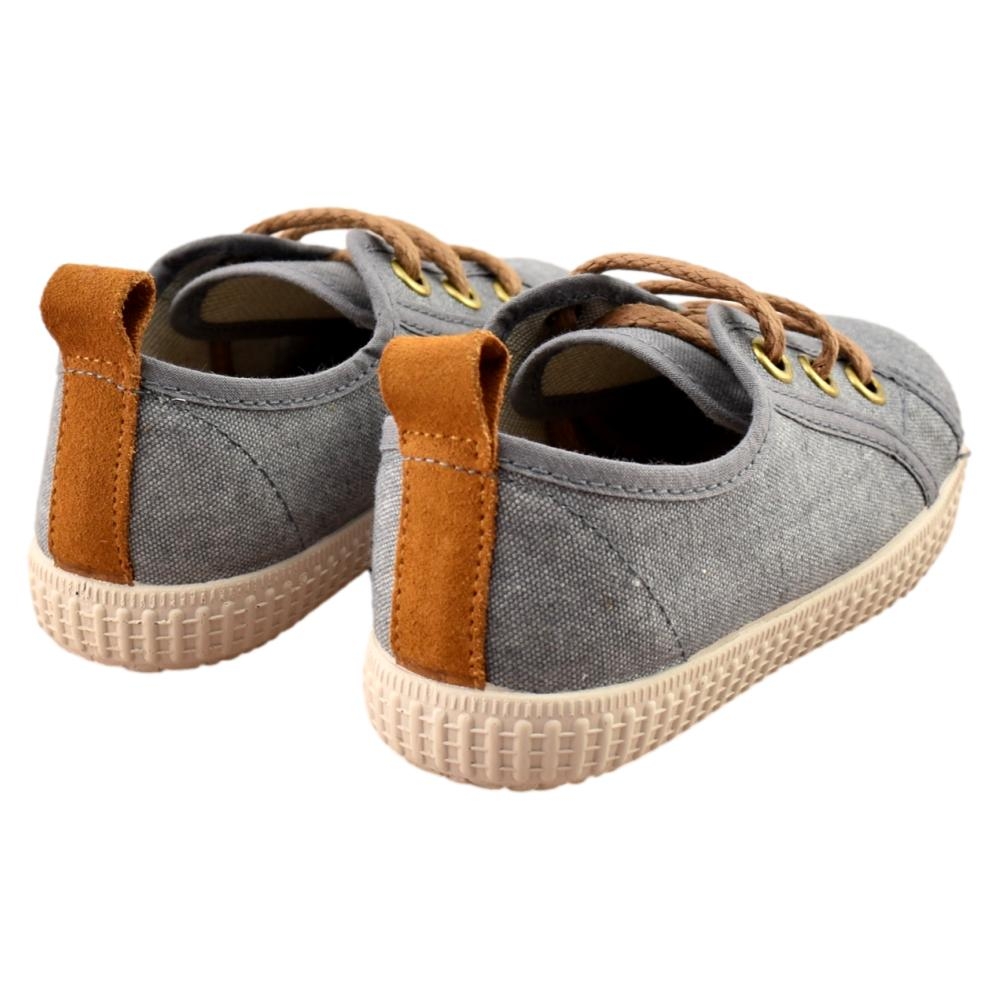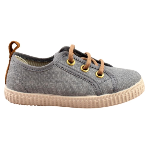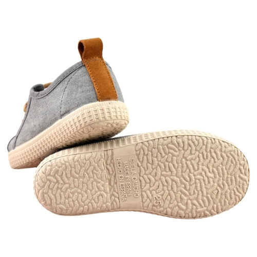 FABRICADO EN ESPAÑA. Tenis lavado con cordones, con el corte y el forro de algodón y suela de caucho natural vulcanizado.