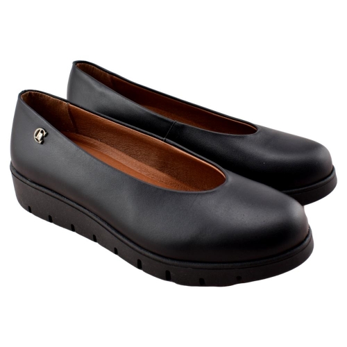FABRICADO EN ESPAÑA. Zapato de piel tipo salón con cuña de 3cm. Piel suave y adaptable y piso de goma flexible.