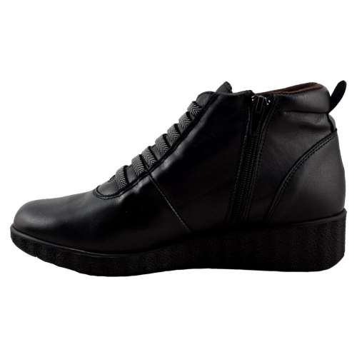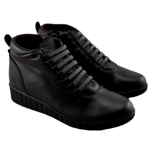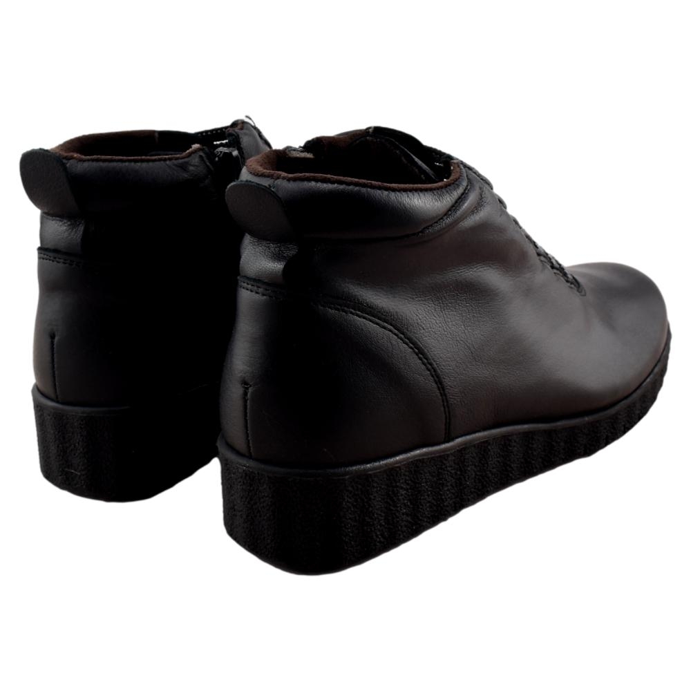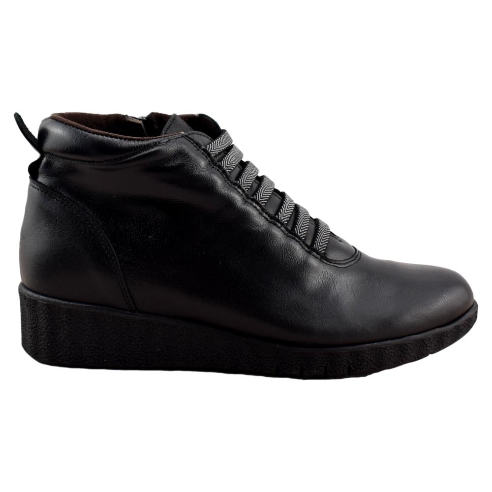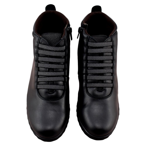 FABRICADO EN ESPAÑA. Botín con piso muy flexible, que unido a su plantilla acolchada garantiza una pisada muy confortable. Fabricado en piel suave forrada con tejido anti bacterias muy cálido. Cordón elástico delantero y cremallera lateral que facilitan su calce y un ajuste perfecto.