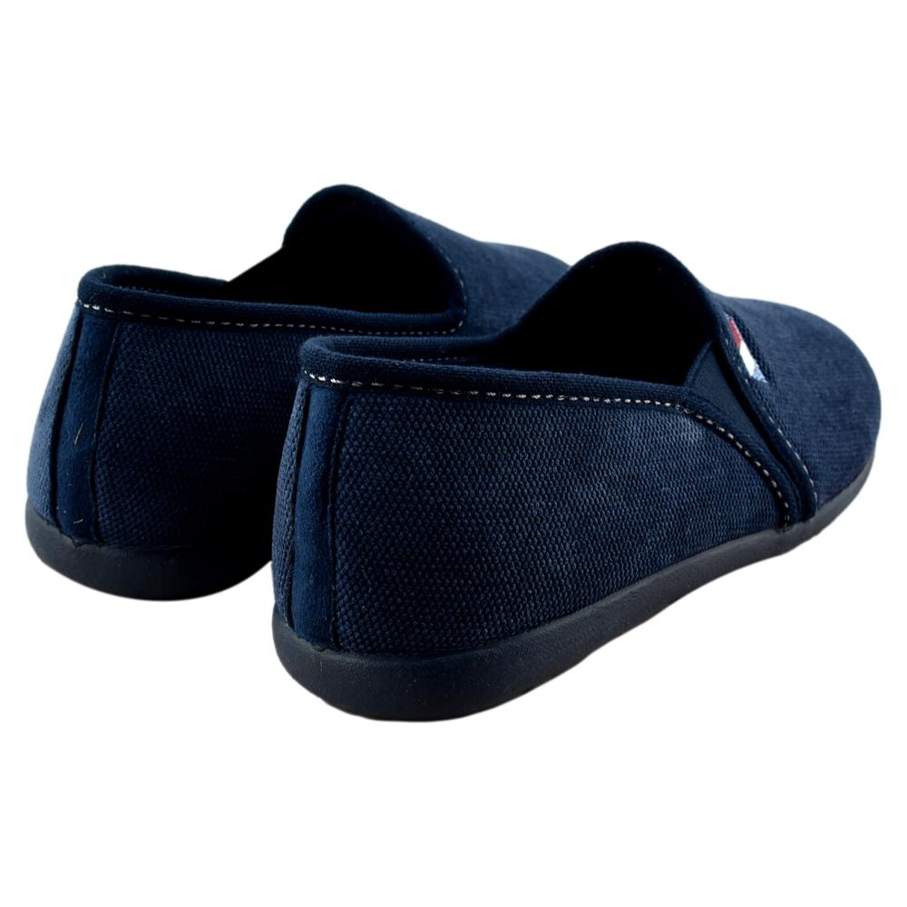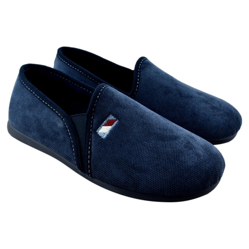 FABRICADO EN ESPAÑA. Zapatillas de casa de hombre fabricadas en paño suave y cálido. Piso de goma flexible. Elásticos laterales que facilitan el calce y aseguran una sujeción perfecta.