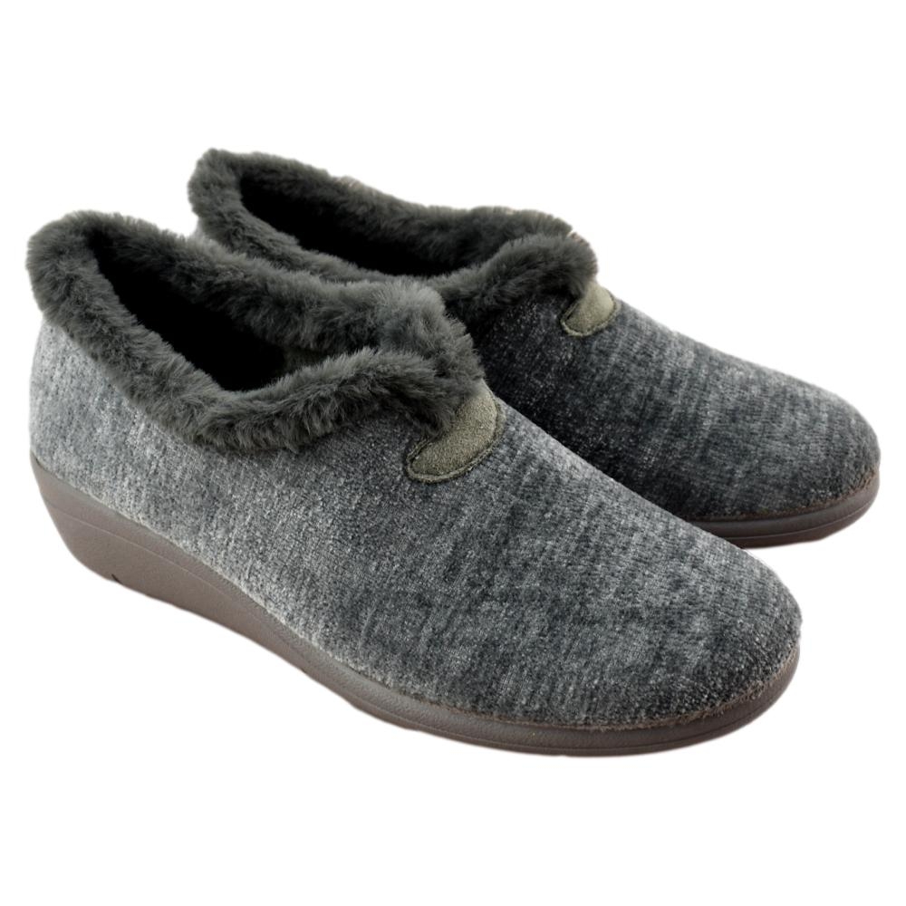FABRICADO EN ESPAÑA. Zapatillas de casa con forro muy suave y cálido. Cuña de goma de 4cm de altura, flexible y antideslizante.