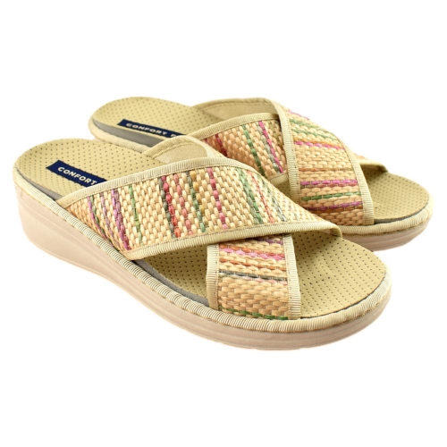 FABRICADO EN ESPAÑA. Zapatillas de casa que destaca por el acolchado de su plantilla extraíble, aportando máxima comodidad y confort en cada pisada. Altura de cuña 3,5cm.