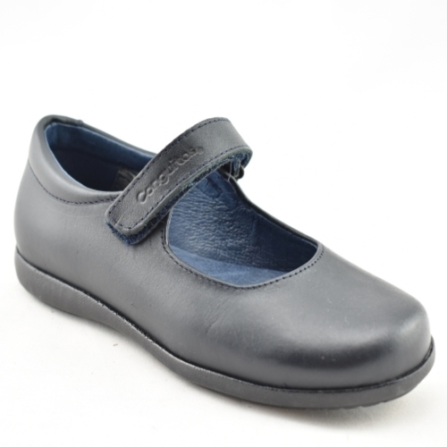 FABRICADO EN ESPAÑA. Zapatos escolares de niña en piel, de color azul marino con suela de goma y tecnología GoFlex que proporciona comodidad al caminar. La tira de velcro proporciona al pie del niño una adaptación perfecta al zapato. Perfecto para la vuelta al cole, con la mejor calidad.