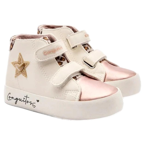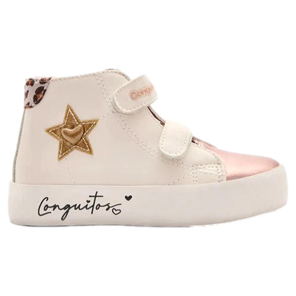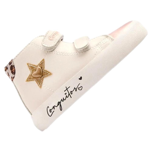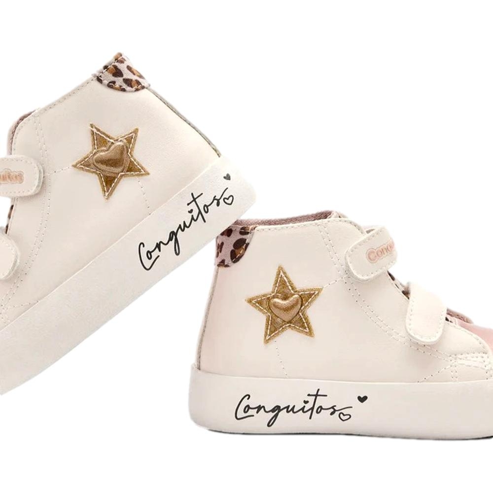 Las Zapatillas Altas con Estrella Tira Blancas de Conguitos son el calzado perfecto para los más pequeños que buscan un estilo moderno y enérgico. Con su diseño blanco brillante y estrellas bordadas, estas zapatillas añaden un toque único y llamativo a cualquier conjunto.