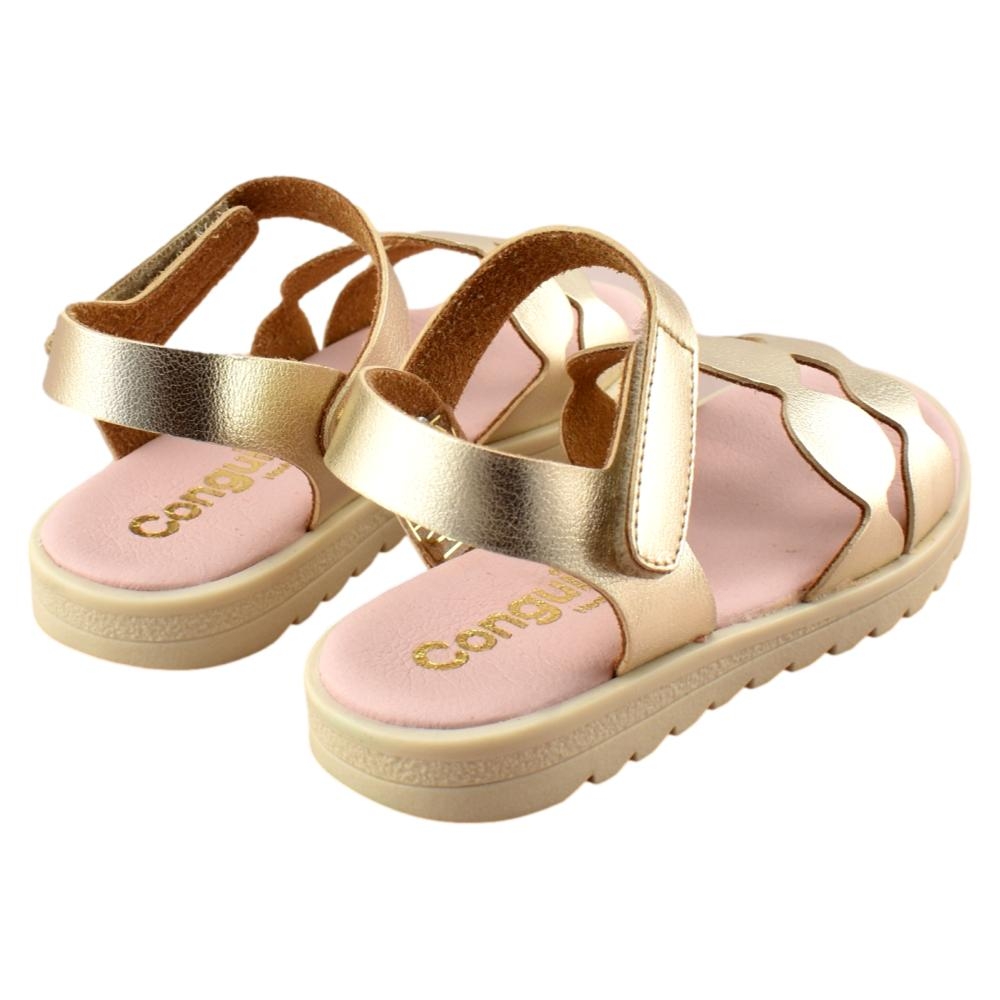 Estas Sandalias de Conguitos combinan elegancia y confort, gracias a su diseño en color dorado con detalle ondulado en la pala, que aporta un toque sofisticado y femenino. Su estructura ligera y transpirable las hace ideales para los días más calurosos.
