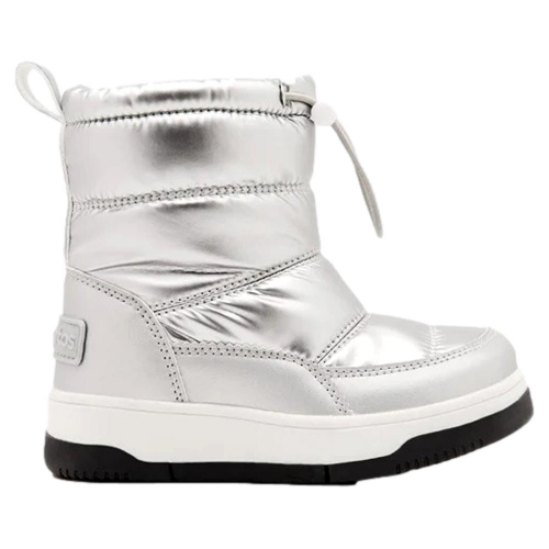Botas acolchadas con ajuste elástico. Un esencial cálido creado para los días más fríos. Este diseño en tono plateado está confeccionado en Nylon de alta calidad. Su forro interior cuenta con un tejido de lana sintética que le aporta un acabado único pensado para la temporada de invierno. Además, presenta un acabado efecto iridiscente y cuenta con cierre elástico ajustable.