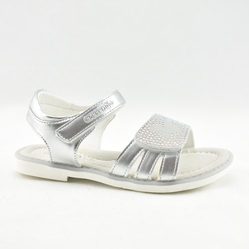 Sandalia plateada con  velcro delantero para un ajuste perfecto.
