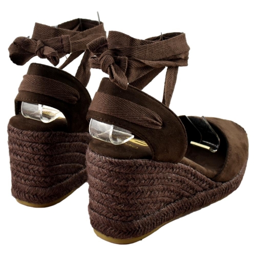 Sandalias Cuña en marrón, cómodos, ajustables, de diseño, a la moda y perfectos para combinar con cualquiera de tus outfits. Su corte sintético, su forro sintético y su plantilla anatómica acolchada aúnan todos los factores necesarios para disfrutar cómodamente de cada paso