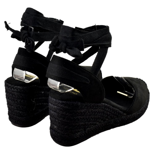 Sandalias Cuña en negro, cómodos, ajustables, de diseño, a la moda y perfectos para combinar con cualquiera de tus outfits. Su corte sintético, su forro sintético y su plantilla anatómica acolchada aúnan todos los factores necesarios para disfrutar cómodamente de cada paso