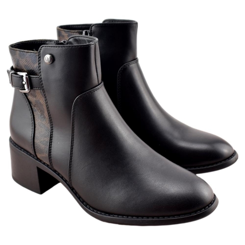 Botines DHS 29187 negros cómodos, ajustables, de diseño, a la moda y perfectos para combinar con cualquiera de tus outfits. Su corte sintético, su forro sintético, su plantilla anatómica fija y su piso de PU aúnan todos los factores necesarios para disfrutar cómodamente de cada paso