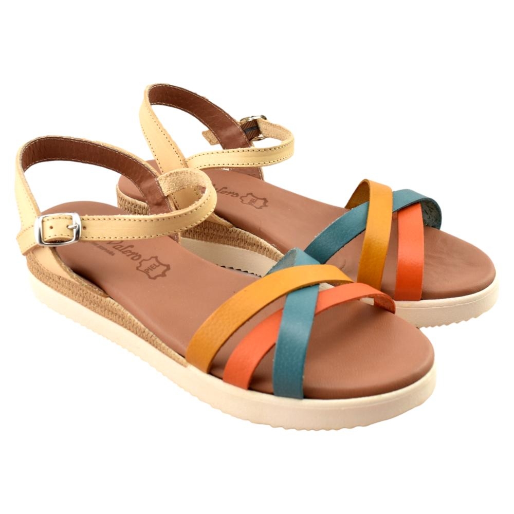 FABRICADO EN ESPAÑA. Estas sandalias para mujer son una excelente opción para disfrutar del verano con comodidad y estilo. Confeccionadas en piel con tiras combinadas cruzadas y equipadas con planta de gel, ofrecen una sensación inigualable de frescura y suavidad. Su diseño minialista garantiza máxima estabilidad al sostener el pie con cobertura mínima. Son ideales para uso diario.