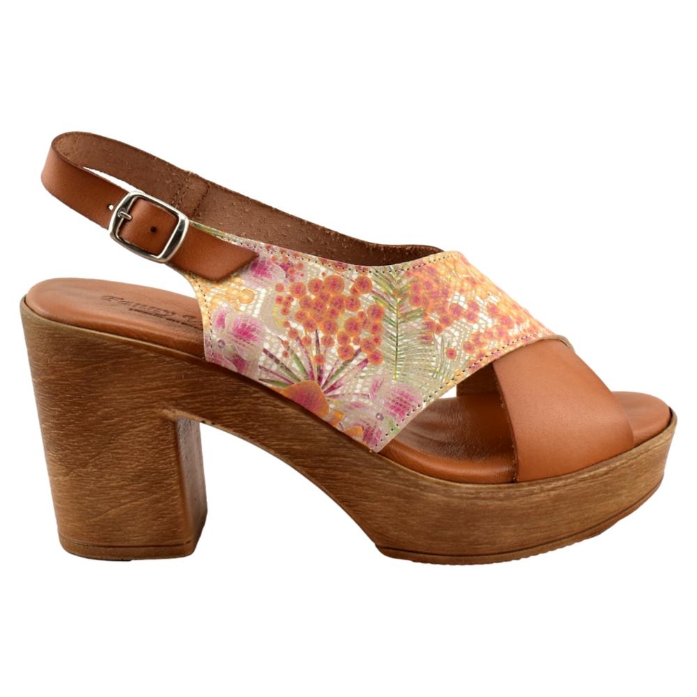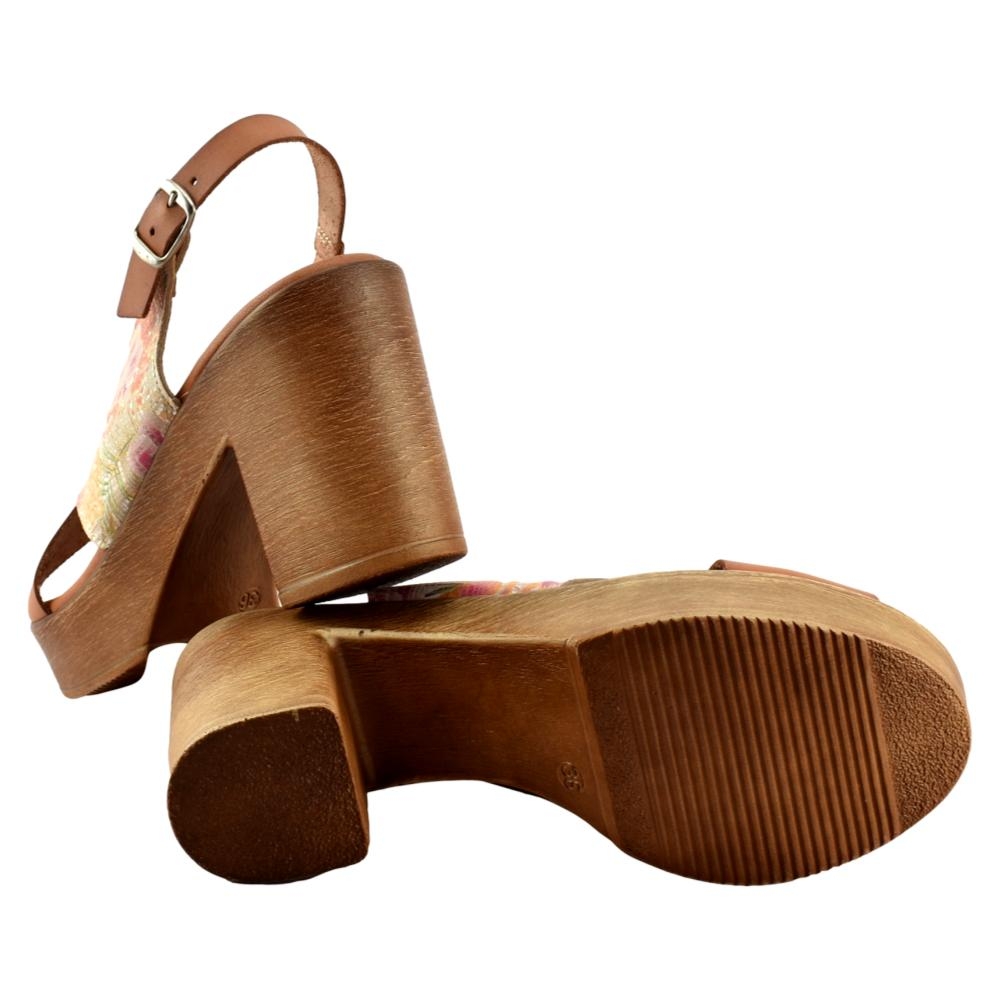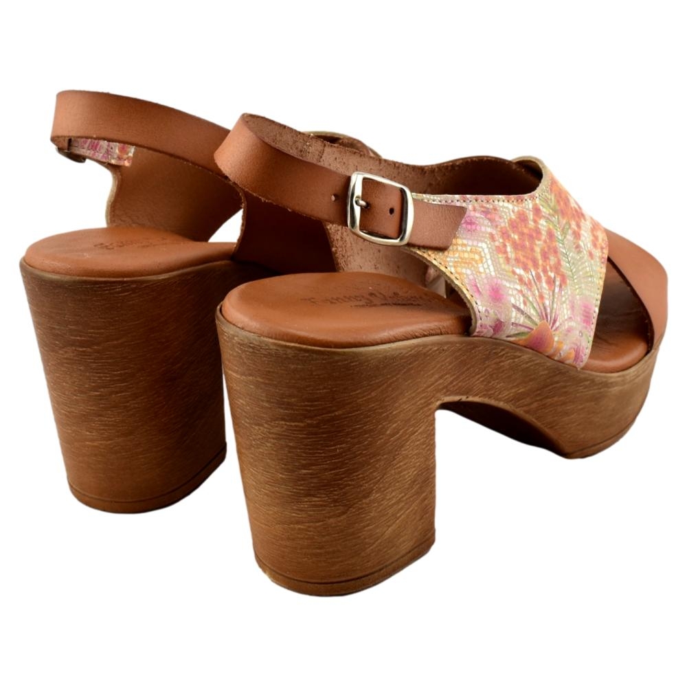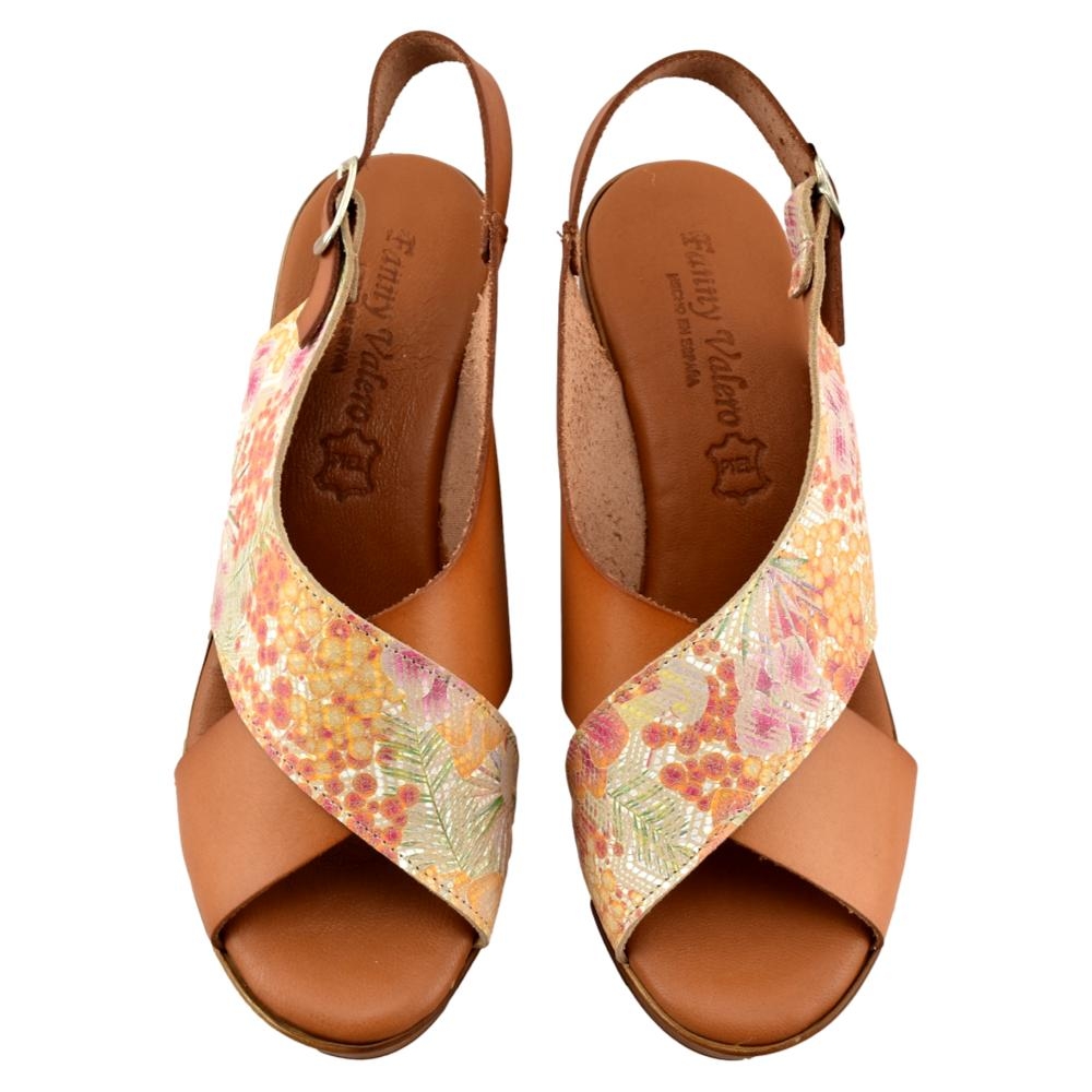 FABRICADO EN ESPAÑA. Sandalia de piel con cuña y plataforma. Incorpora plantilla de gel acolchada que aporta máxima comodidad y confort. Altura de cuña 8 cm.