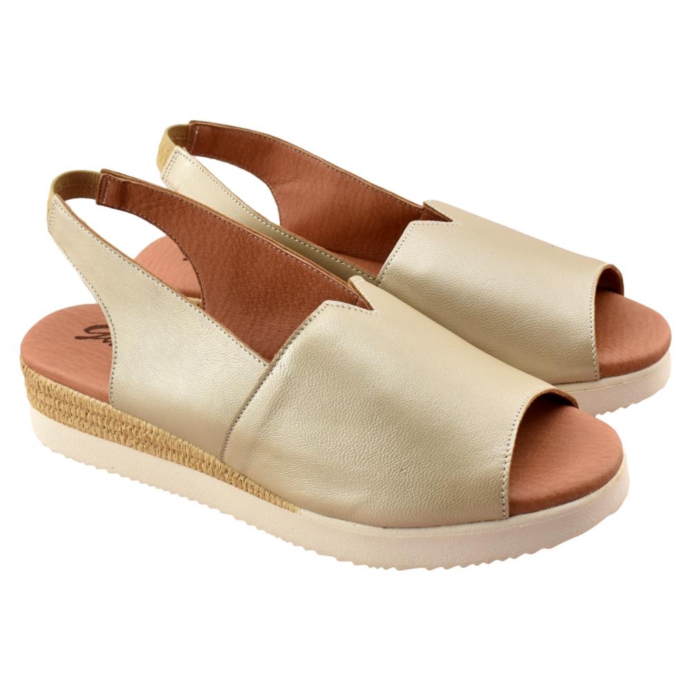 FABRICADO EN ESPAÑA. Sandalia de piel con planta de gel. Cuña baja de 3cm.