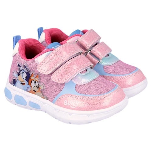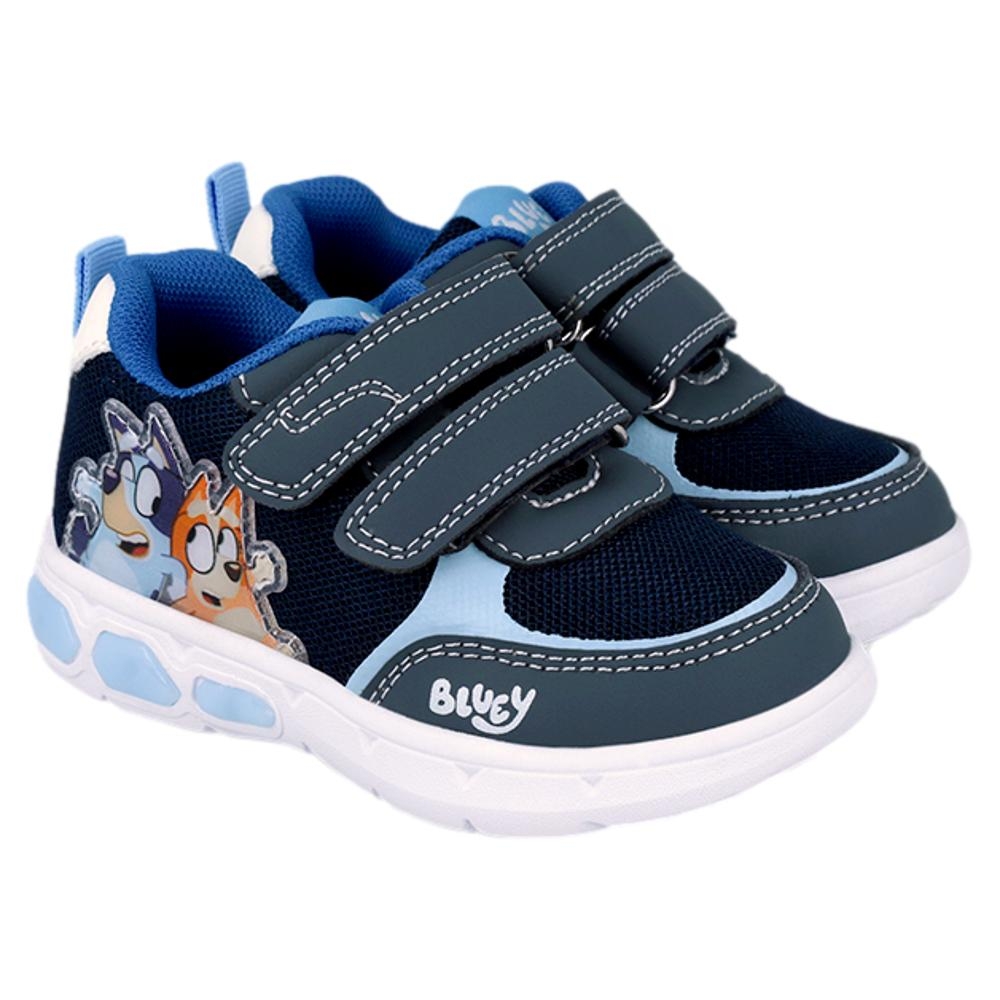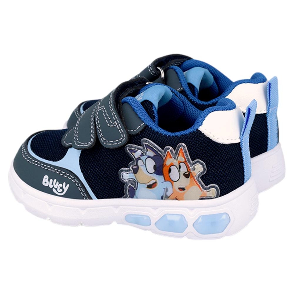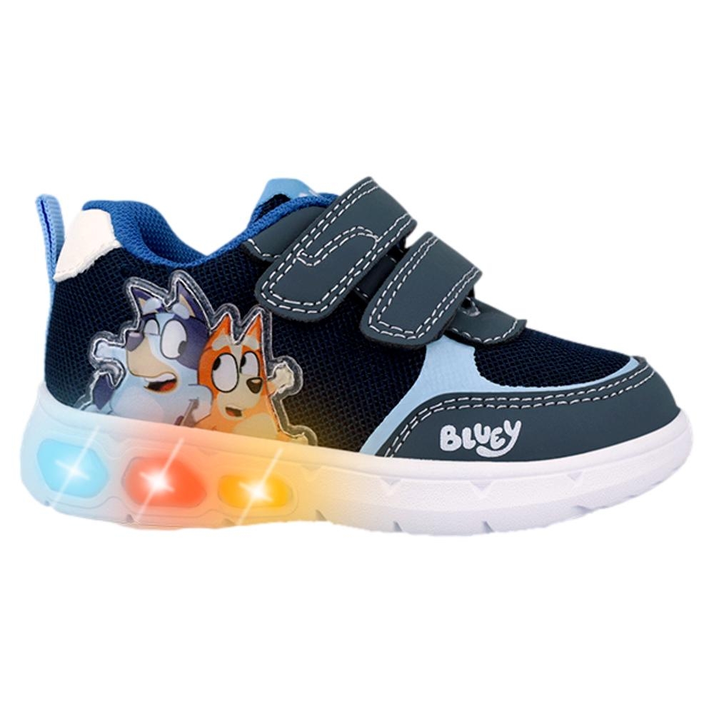 Zapatillas deportivas de la famosa serie infantil Bluey. Cierre de tiras adhesivas. El piso incluye luces que se encienden al caminar. Estas zapatillas causan furor en los más peques de la casa.
