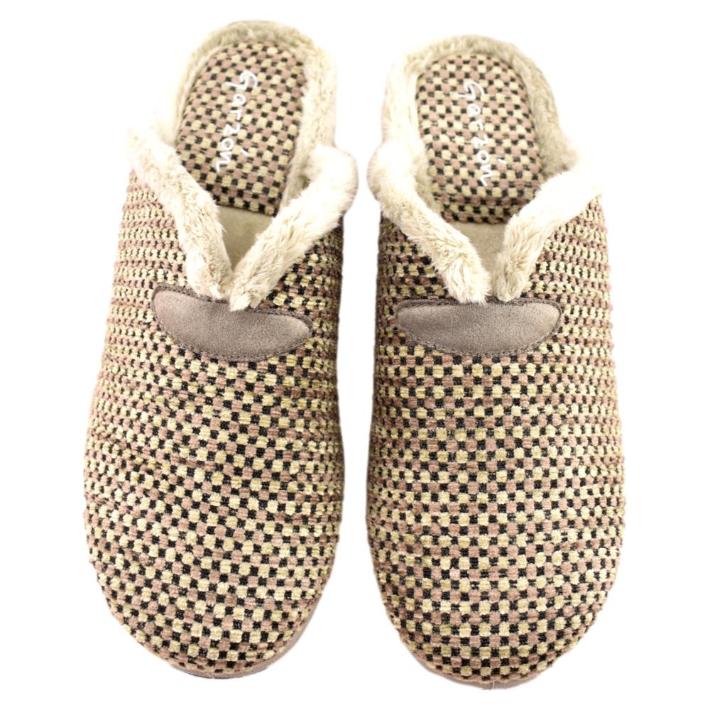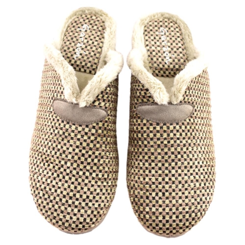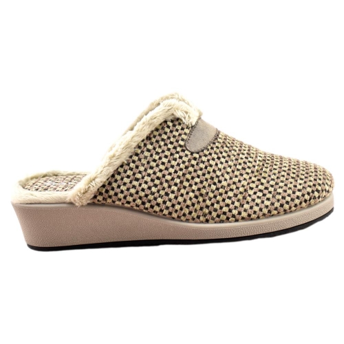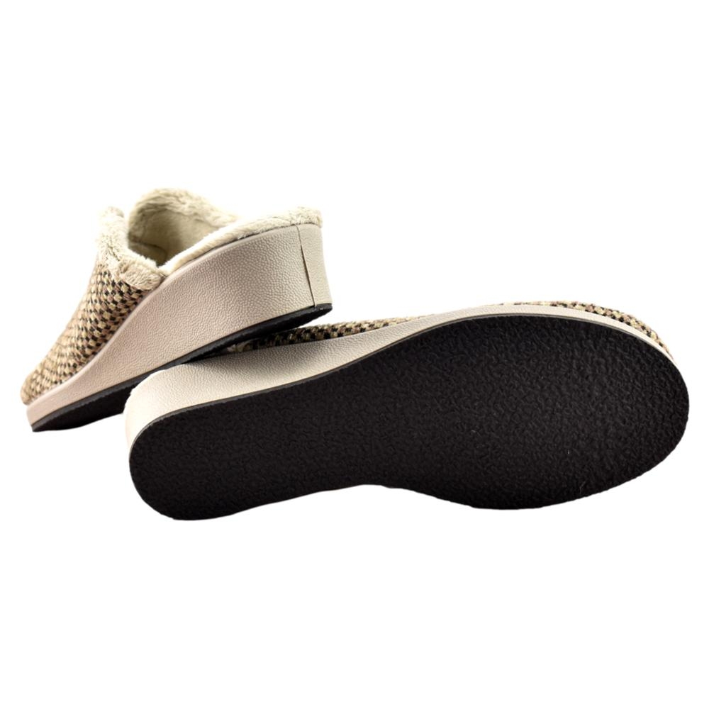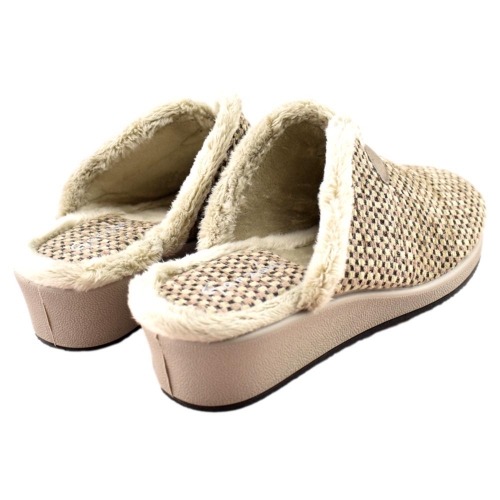 FABRICADO EN ESPAÑA. Zapatillas de casa con tejido  y forro muy cálido y suave. Piso de goma con cuña de 4cm, flexible y antideslizante.