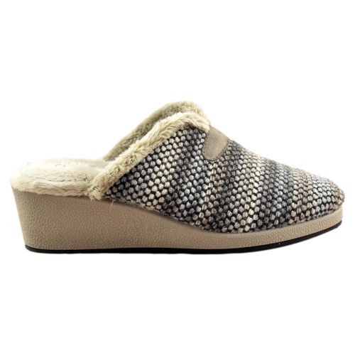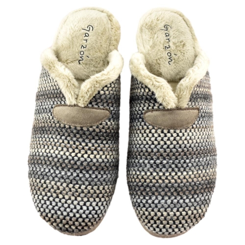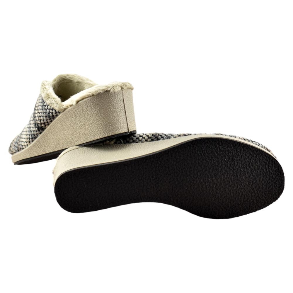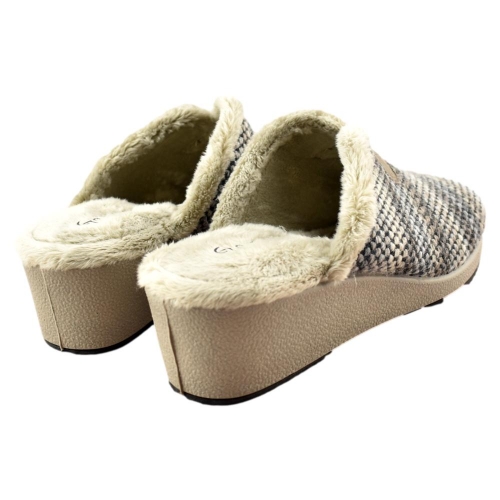 FABRICADO EN ESPAÑA. Zapatillas de casa con tejido  y forro muy cálido y suave. Piso de goma con cuña de 5cm, flexible y antideslizante.
