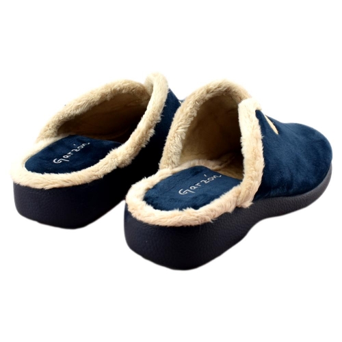 FABRICADO EN ESPAÑA. Zapatillas de casa fabricada en materiales de primera calidad. Destaca la suavidad de su tejido. Media cuña de 3 cm y piso de goma flexible y antideslizante.