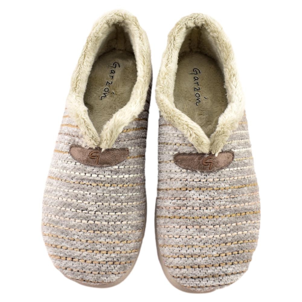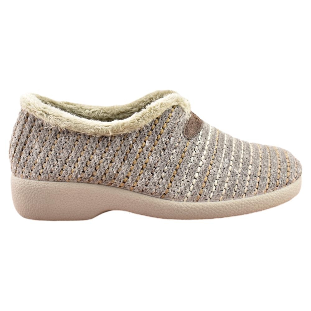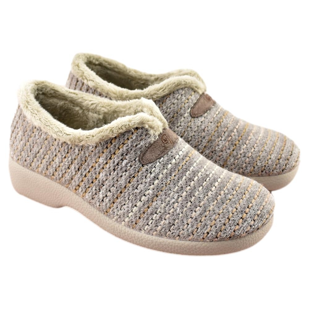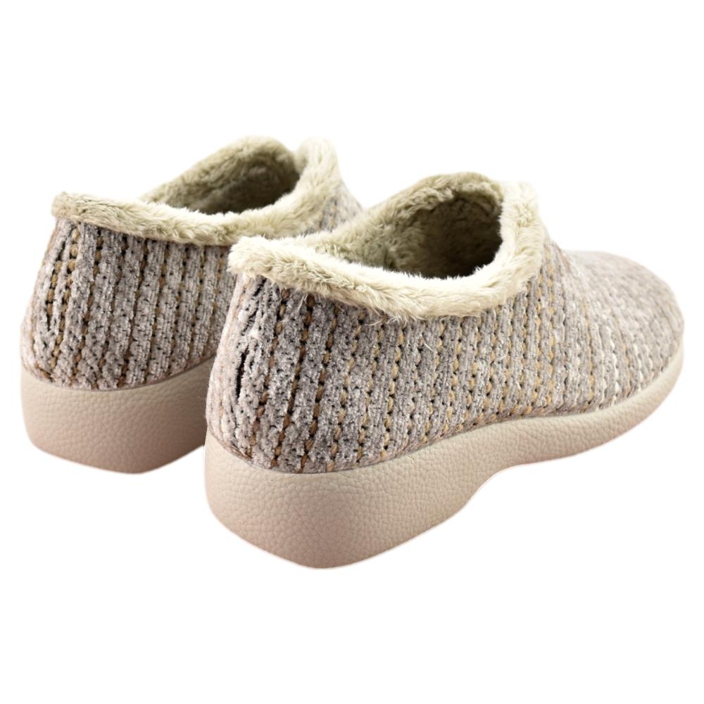 FABRICADO EN ESPAÑA. Zapatillas de casa con tejido  y forro muy cálido y suave. Piso de goma con cuña de 3cm, flexible y antideslizante.