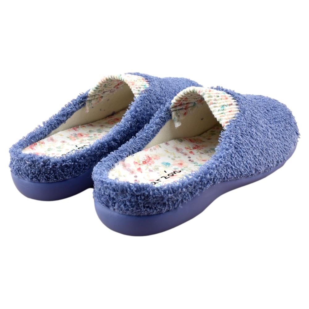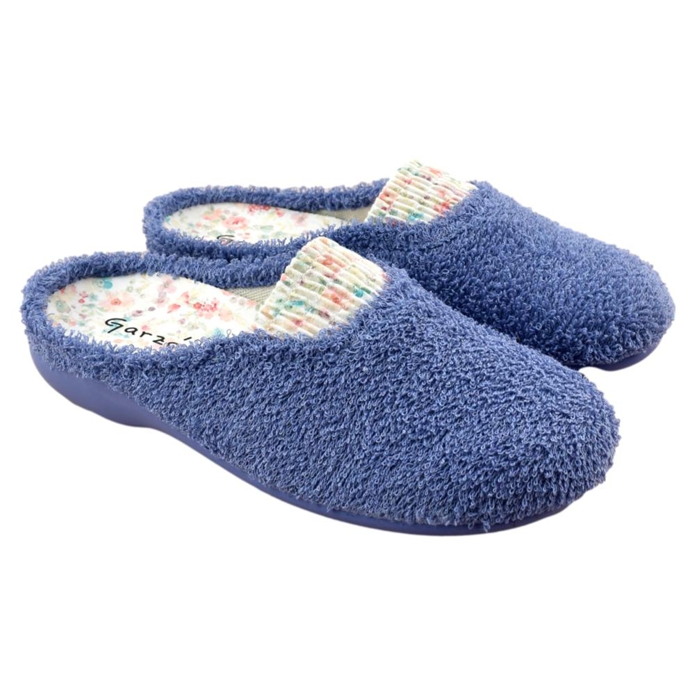 FABRICADO EN ESPAÑA. Zapatillas de estar por casa con puntera cerrada. Elástico central que favorece el calce y asegura una sujeción perfecta. La plantilla extraíble de látex le aporta máxima comodidad en la pisada. Fabricada en rizo lavable, material suave, fresco y transpirable. Piso de goma flexible.