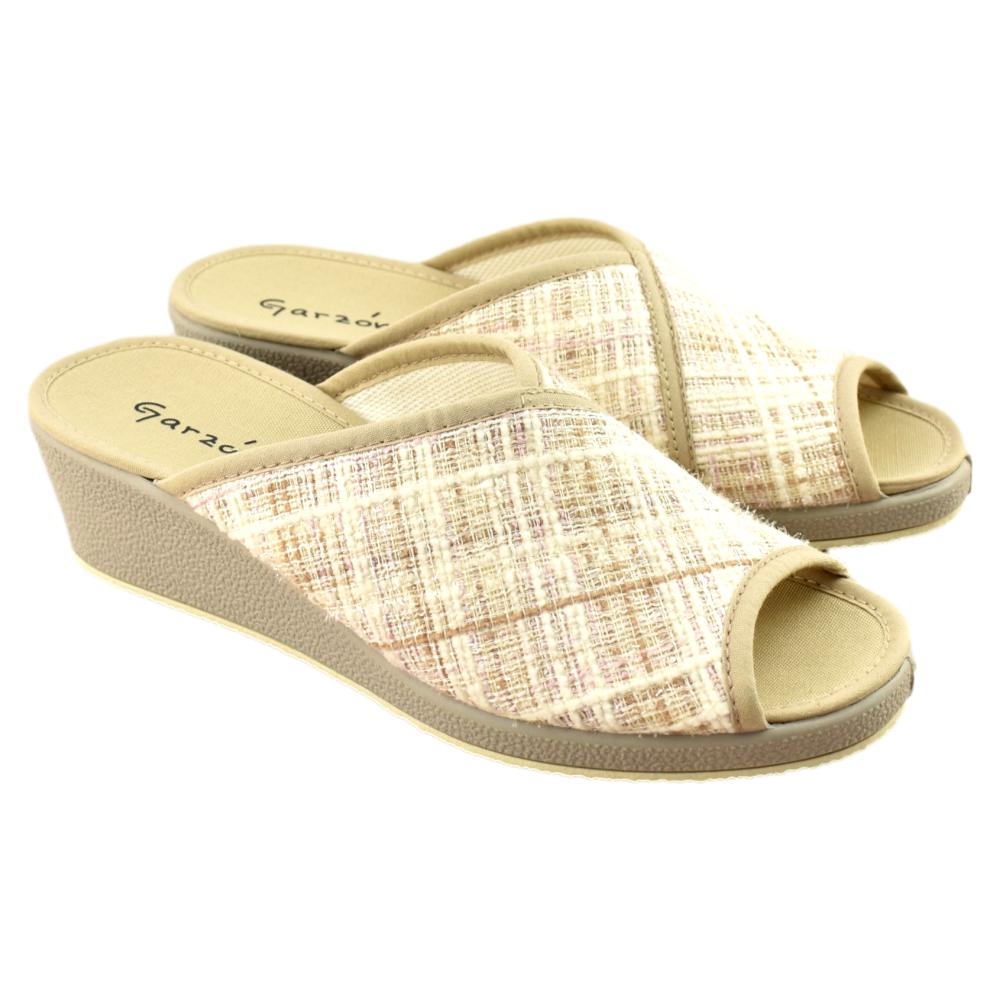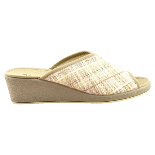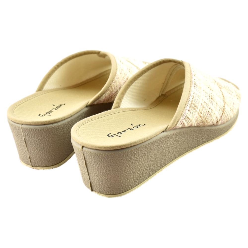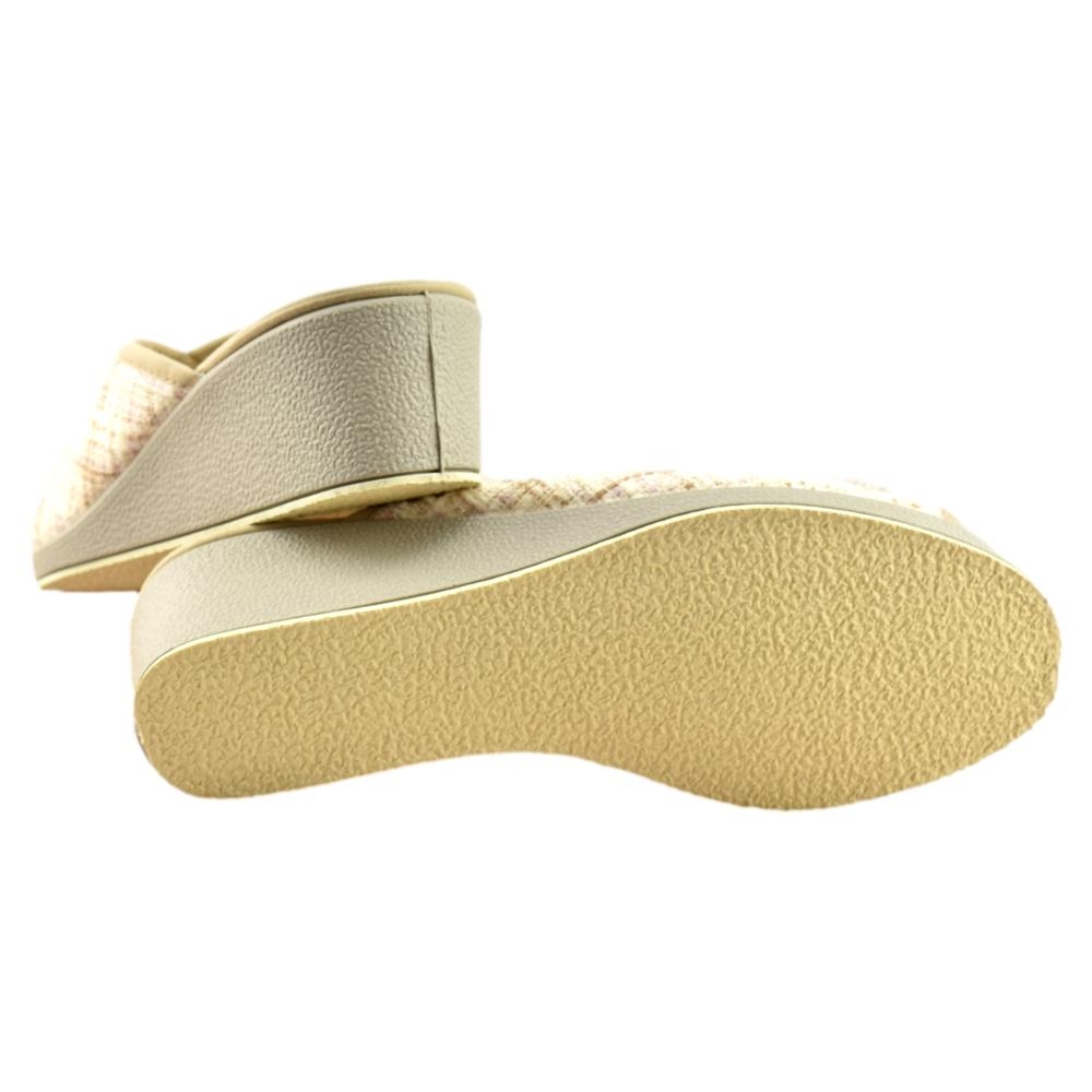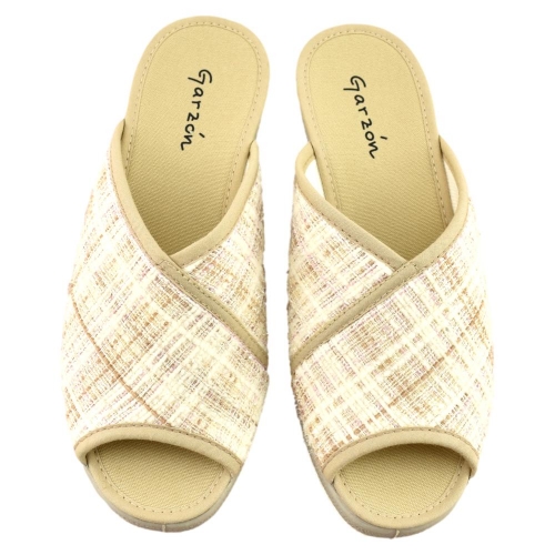 FABRICADO EN ESPAÑA. Zapatillas de casa con talón abierto y dedos fuera con cuña de 5,5cm, de color beige, con forro interior en textil y suela de goma antideslizante. Chinela Ideal para mantener tus pies frescos en verano. Piso con grabado especial rugoso para evitar posibles deslizamientos. Fabricada con tejidos en microfibras y algodón que permiten una constante ventilación. Relleno de corcho natural para una total absorción de los posibles impactos. Respetuosos con la naturaleza. Utilizando materiales que cuidan al máximo posible el medio ambiente.