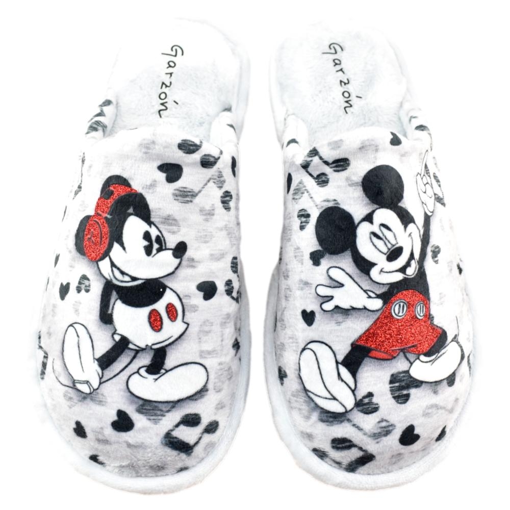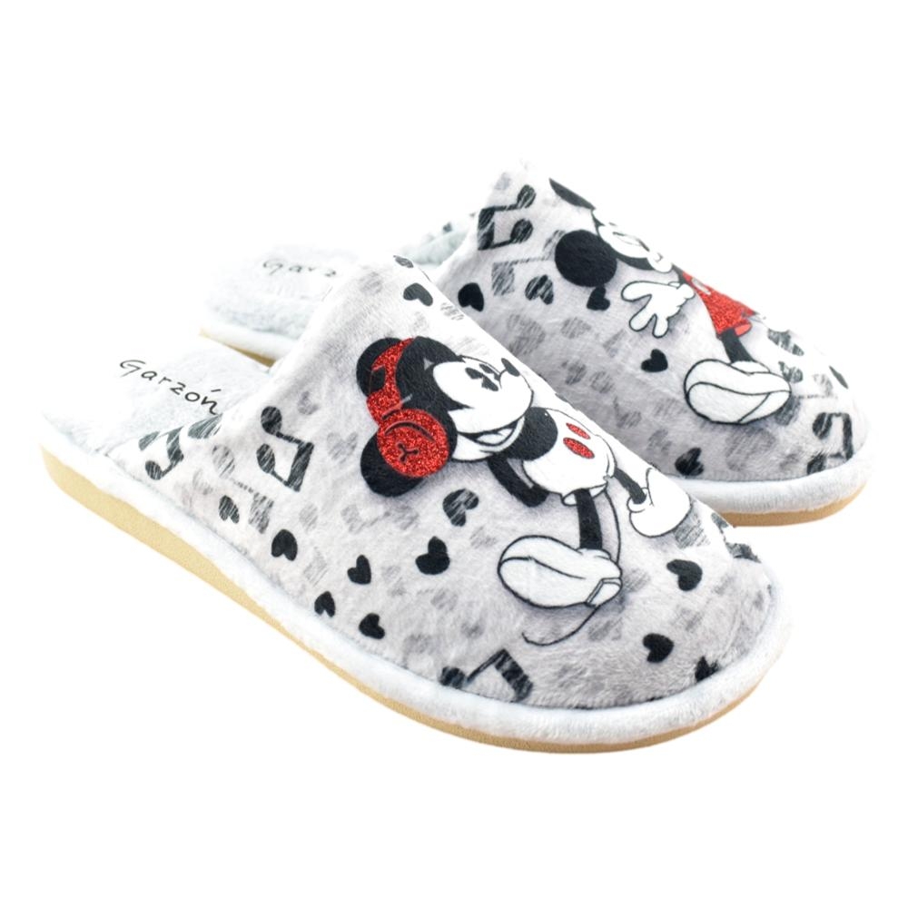 FABRICADO EN ESPAÑA. Zapatillas de casa con piso especial parquet, muy ligero, no suena, no raya y no resbala. Divertido diseño de Mickey y Minnie y tejido muy cálido y suave.