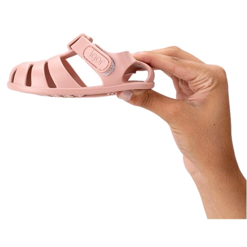 FABRICADO EN ESPAÑA. Estas cangrejeras respetuosas infantiles de Igor están diseñadas para ser prácticas y cómodas. El cierre autoadhesivo facilita su colocación y extracción, tanto para los padres como para los propios niños/as. Fabricadas con un mínimo del 50% de PVC reciclado libre de ftalatos, estas cangrejeras son flexibles y cuentan con una suela plana (con drop cero) y anchura suficiente para garantizar la libre movilidad de los dedos.