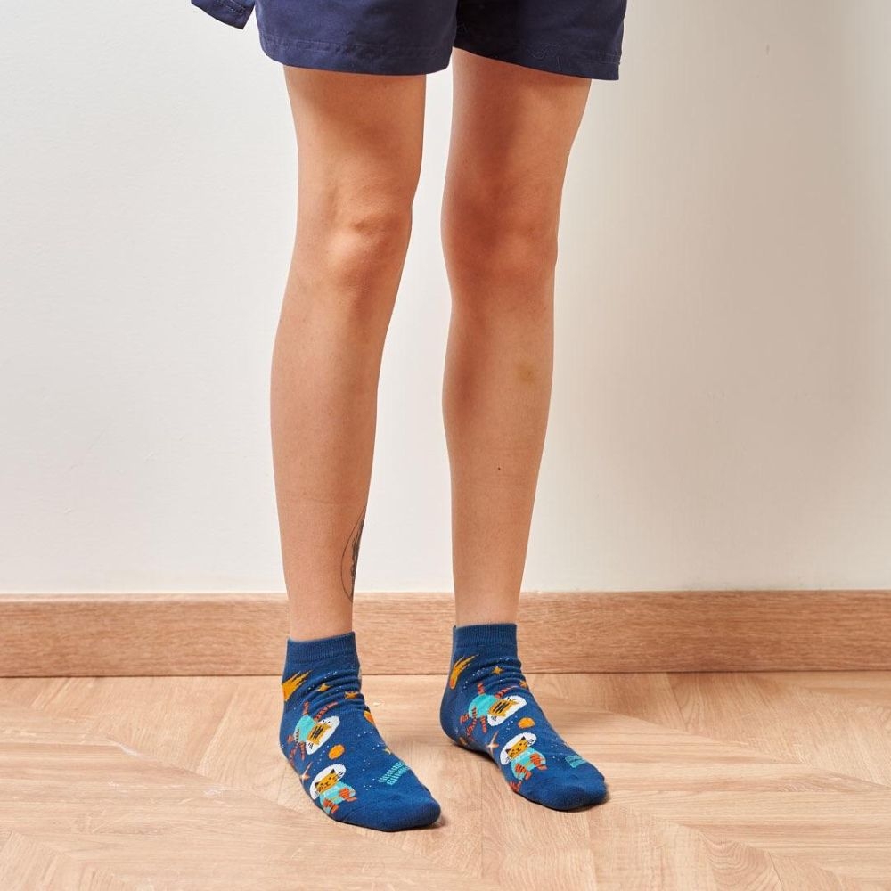 Calcetín tobillero confeccionado con algodón de gran calidad. Diseños originales y alegres. Elásticos de sujeción firme y suave a la altura del tobillo.