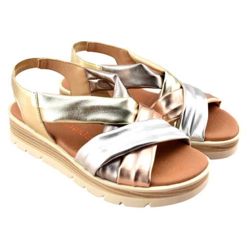 FABRICADO EN ESPAÑA. Sandalia fabricada en tiras tubulares de piel en tonos metalizados. Su planta de gel le aporta máxima comodidad en cada pisada. Modelo ideal para combinar con cualquiera de tus outfit esta temporada.