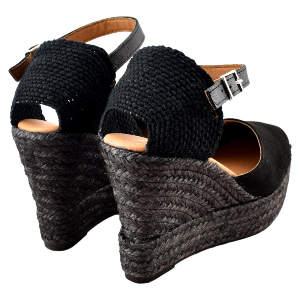 FABRICADO EN ESPAÑA. No pasarás desapercibida con estas alpargatas tipo valenciana con cuña y plataforma. Un modelo cómodo y elegante que podrás lucir con cualquier outfit esta temporada. Su planta de piel acolchada te aportará confort en cada pisada, y su trasera de tela de saco con cierre de hebilla aseguran un ajuste perfecto. El corte ultrasuede muy suave le da un aspecto sofisticado y un tacto agradable al contacto con la piel. Altura de cuña más plataforma 11cm.