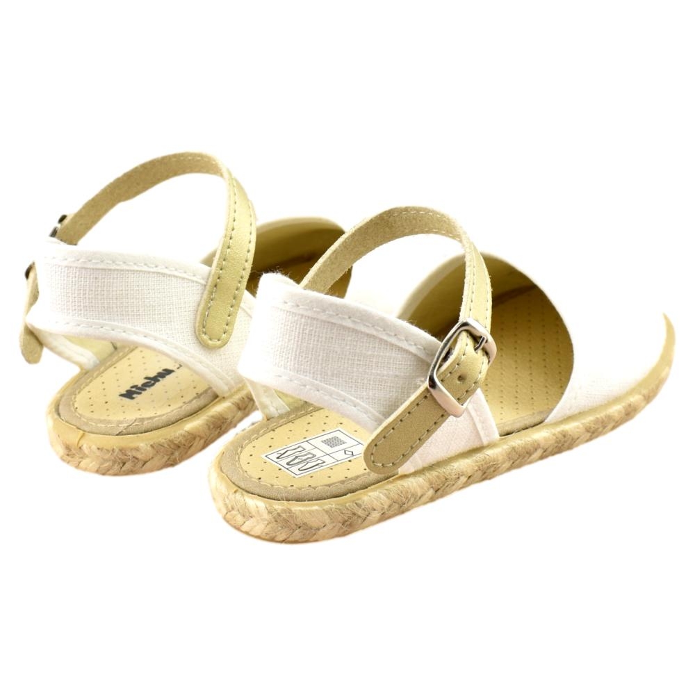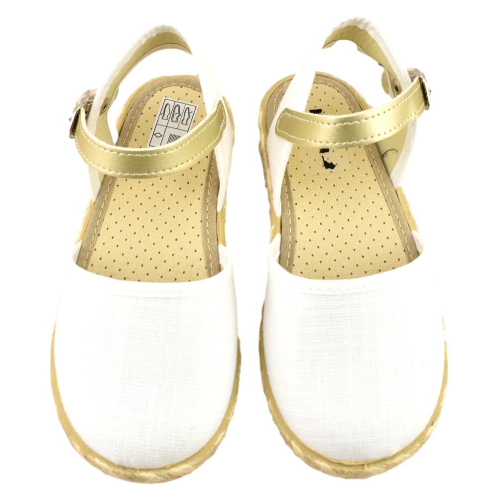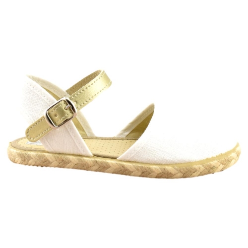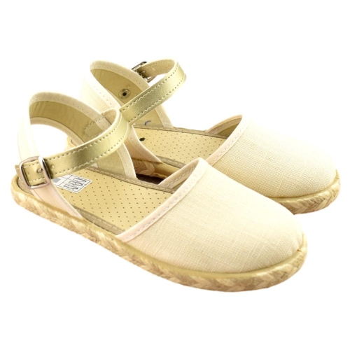 FABRICADO EN ESPAÑA. Zapatilla de lona con piso flexible de goma con ribete de yute. Cierre de hebilla.