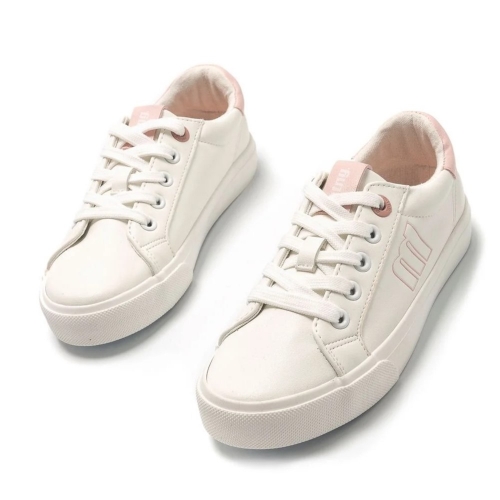 Zapatilla Emi Mustang para niño, inspirada en la tradicional bamba blanca con cordones al tono. Incluye la trasera de color azul marino. Logo de la marca bordado al tono en el lateral. Suela de goma ligeramente alzada para mayor comodidad en la pisada. Perfectas para ir al cole o completar sus outfits más formales.