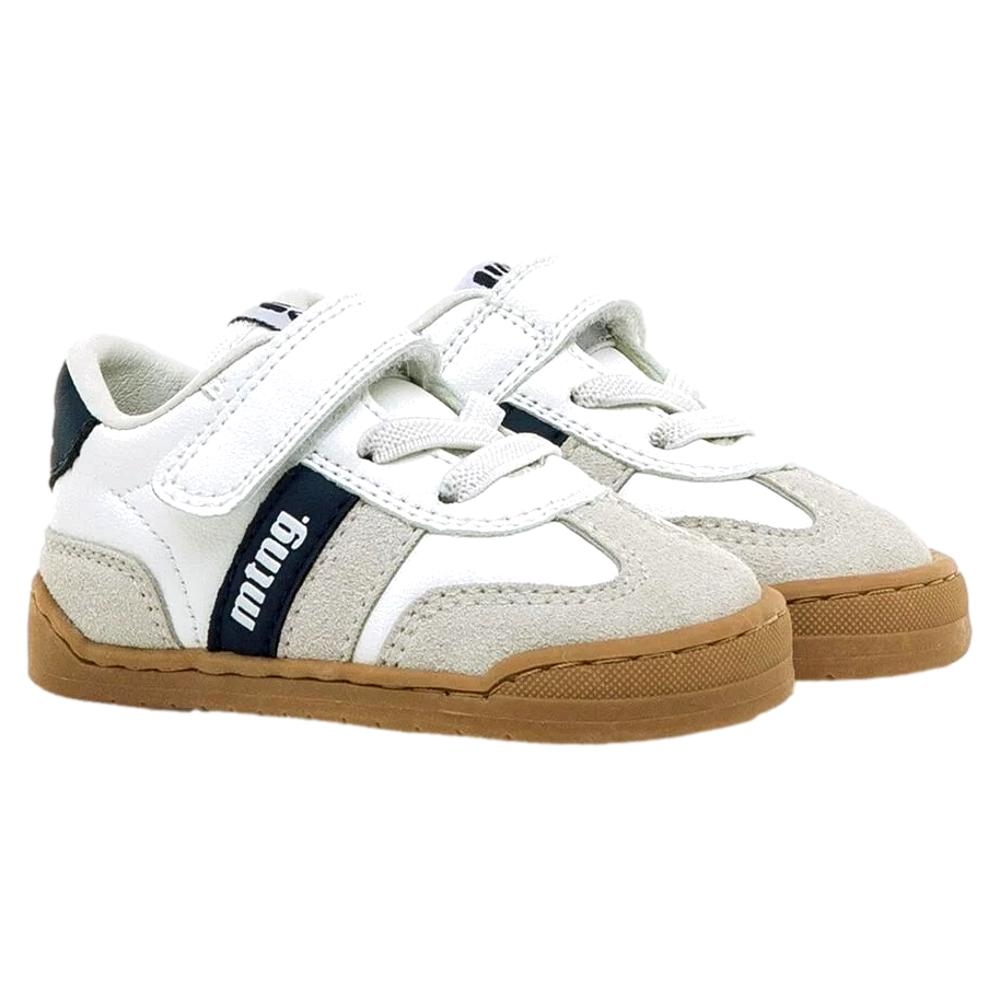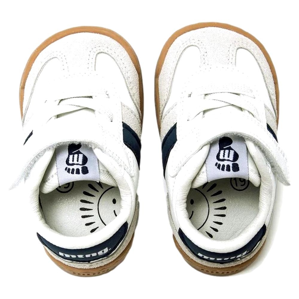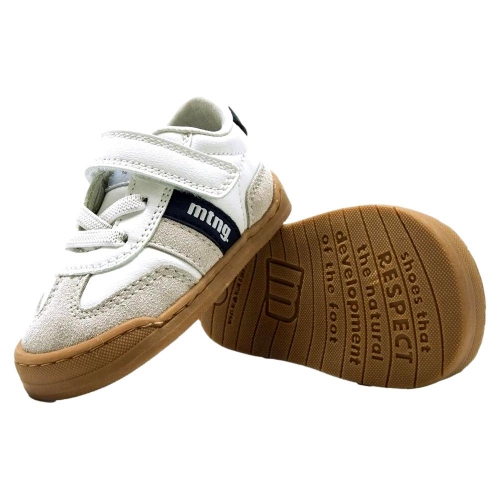 Zapatillas blancas FREE BABY de la marca Mustang para bebés. Estas zapatillas combinan una parte superior blanca con detalles en marino y gris . Con cierre adherente y de cordones. Diseñada y desarrollada especialmente en colaboración con el Dr. Juanjo López, traumatólogo deportivo e infantil, para respetar el desarrollo natural del pie de la niña. Gracias a su puntera ancha permite el libre movimiento de los dedos dentro del zapato. Su suela tiene 3 mm de grosor y con zero drop (totalmente plana) respeta el natural desarrollo del pie del pequeño y sus elementos flexibles y torsionables hace que el pie del niño no esté encorsetado por la estructura del zapato. Las plantillas extraíbles y las marcas de los dedos en la misma, facilita comprobar si la talla del calzado es la correcta para tu hijo. Además, su fácil apertura facilita que el niño pueda descalzarse y calzarse de forma autónoma. Acompaña los primeros pasos de tu bebé con Mustang.