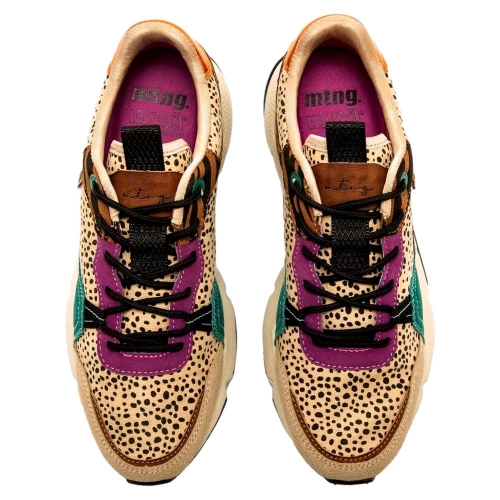 Zapatillas de mujer de la marca Mustang, modelo Climb multicolor de estilo animal print. Este diseño atrevido combina estampados de leopardo, detalles en tonos morado, verde y naranja metalizado, creando un look único y llamativo. Su suela gruesa garantiza gran soporte, mientras que los cordones negros añaden un contraste moderno. Incorporan una plantilla extraíble con tecnología Starfit y diseño termoconformado, que se adapta perfectamente al contorno del pie para ofrecer un soporte óptimo. Gracias a la espuma Comfort Foam, garantizan una amortiguación excepcional y comodidad durante todo el día. Ideales para destacar en tus conjuntos con un toque audaz y original.