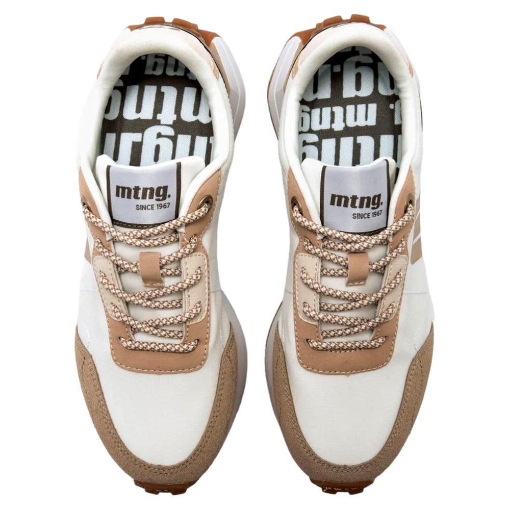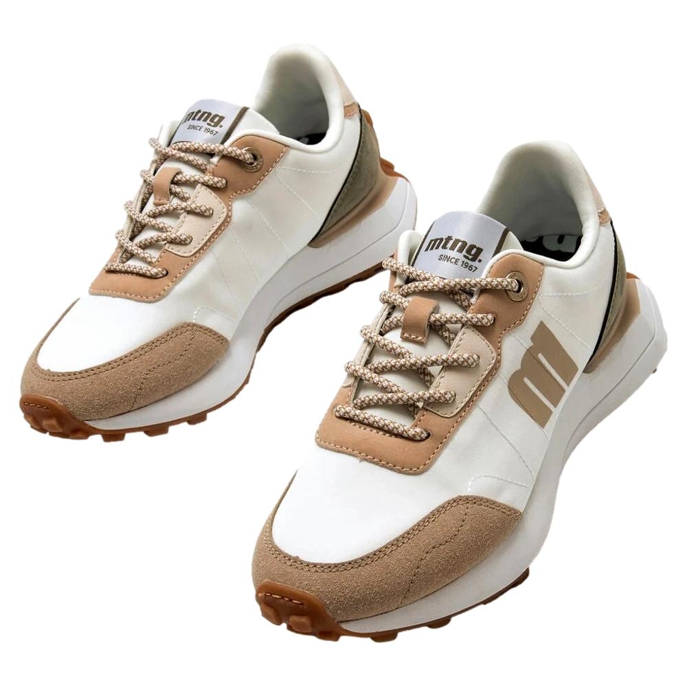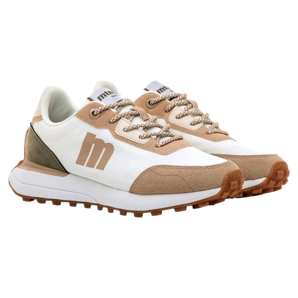 Zapatillas estilo casual deportivo de color blanco con detalles beige para mujer, modelo Zinc de Mustang. Este diseño combina una suela de goma con dibujo marcado tipo trail y paneles en contraste que aportan un look actual y versátil. El logo lateral, los cordones bicolor y el talón en color verde caqui le dan un toque urbano. La base acolchada con plantillas con tecnología Starfit y la suela con tecnología Extralight, las hace más ligeras y cómodas para llevar durante horas. Con certificado VEGANO sellado por INESCOP, el cual garantiza que la naturaleza química principal del material no se corresponde con fibras de origen animal.