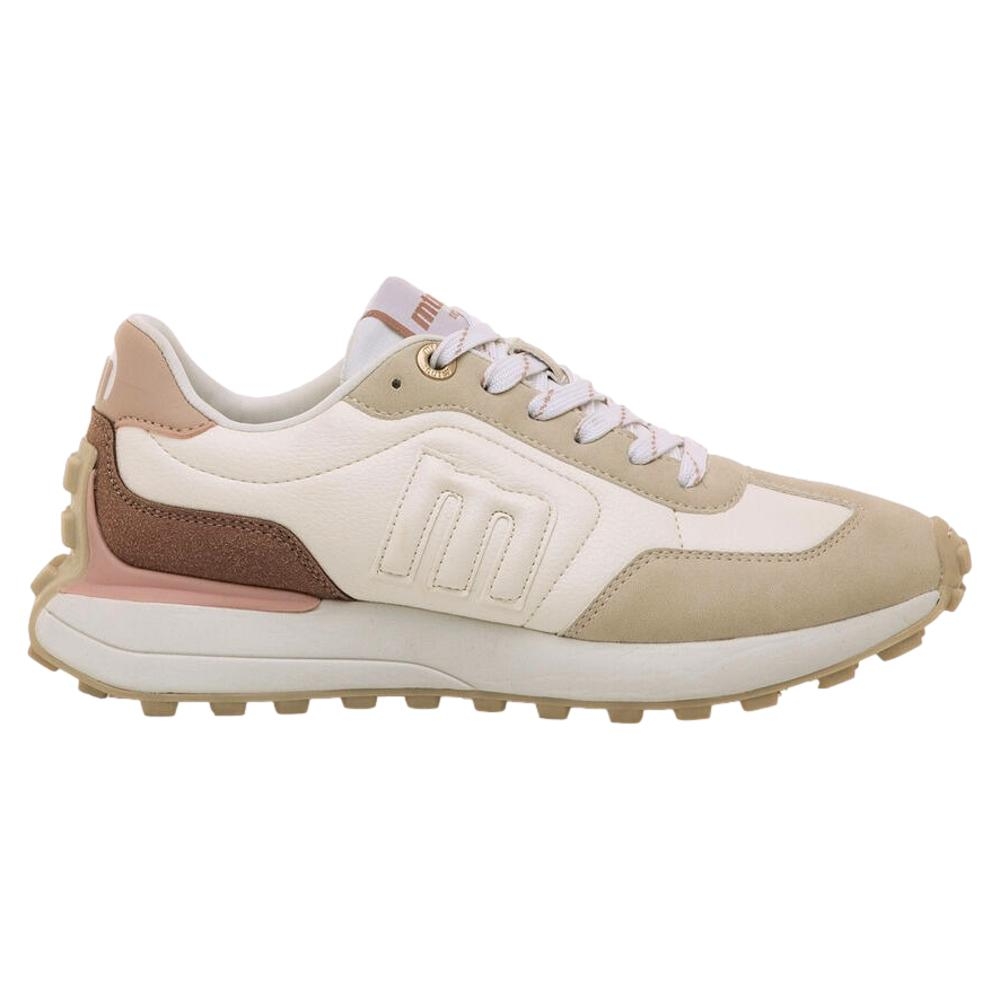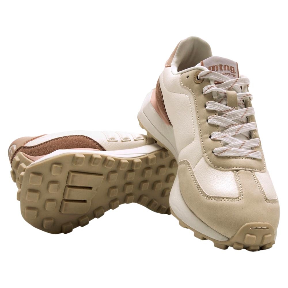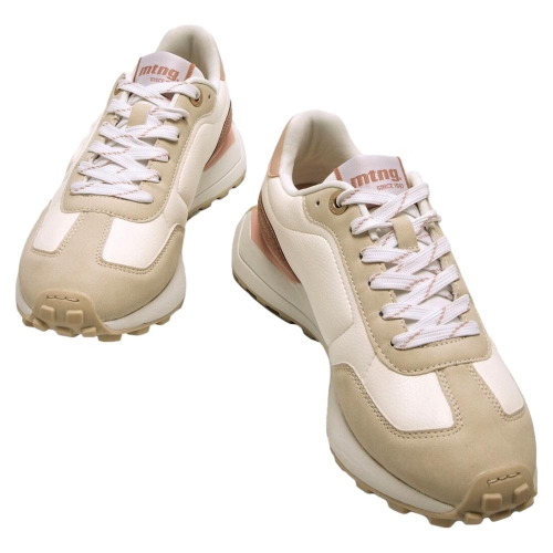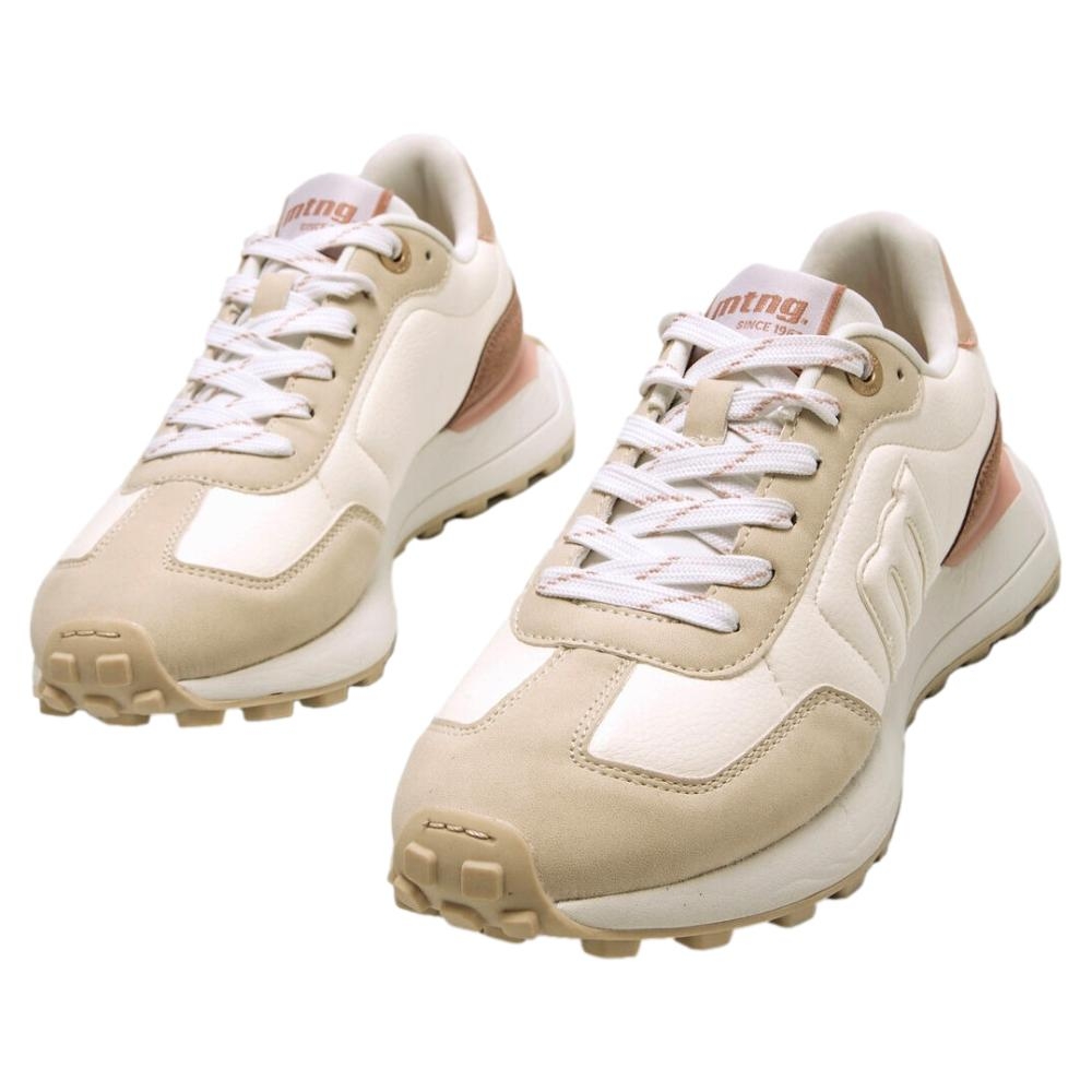 Zapatillas casual beige para mujer, modelo Zinc de la marca Mustang. Estas zapatillas combinan paneles en tonos crema, marrón y rosa, perfectos para darle un toque luminoso y versátil a tus looks diarios. Su suela dentada asegura mejor agarre en cada paso, mientras que los cordones en contraste añaden un acabado dinámico. Incorporan una plantilla extraíble con tecnología Starfit y diseño termoconformado, que se adapta perfectamente al contorno del pie para ofrecer un soporte óptimo. Gracias a la espuma Comfort Foam, garantizan una amortiguación excepcional y comodidad durante todo el día.