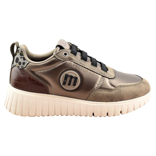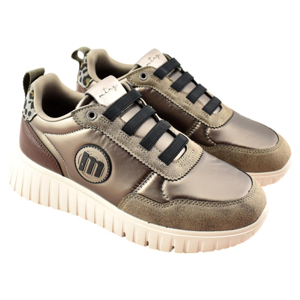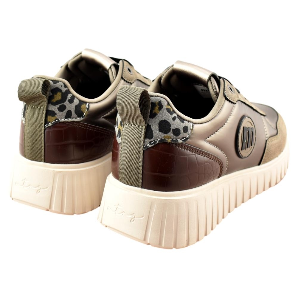 Zapatillas para mujer de la marca Mustang, de estilo running retro con acabado brillante. Presenta una mezcla de texturas en tono tabaco y detalles animal print que refuerzan su diseño cuidado. La suela con base negra garantiza tracción, mientras que el cuello acolchado mejora la comodidad. Incorporan una plantilla de 4 mm con tecnología Starfit, estas zapatillas ofrecen una pisada suave y cómoda. Su espuma Comfort Foam aporta un acolchado extra, ideal para disfrutar de un confort prolongado en cada uso.