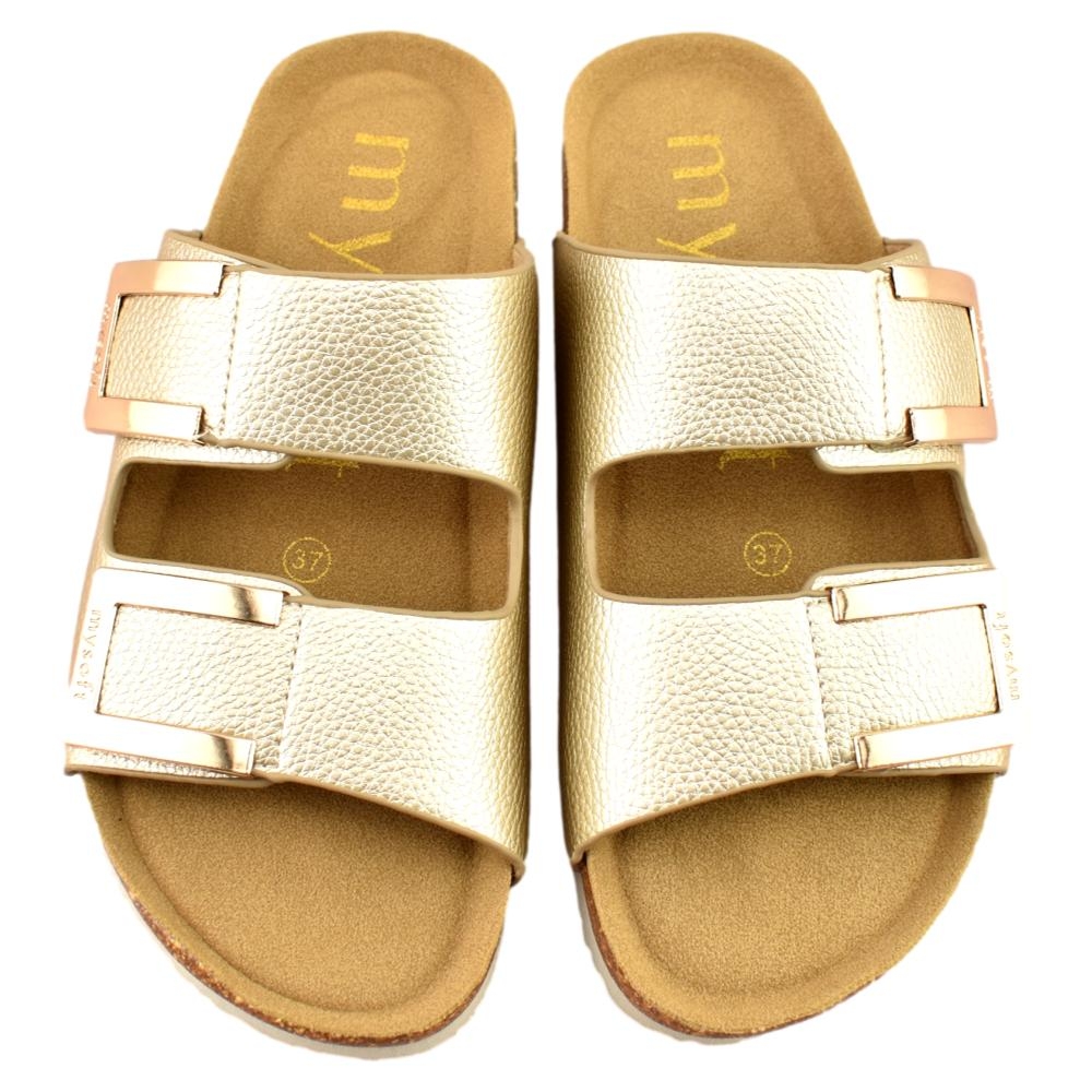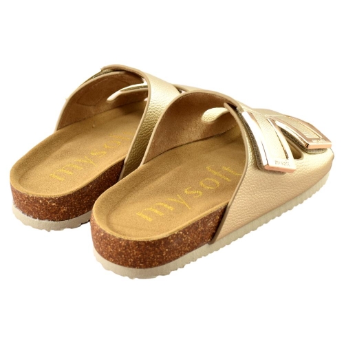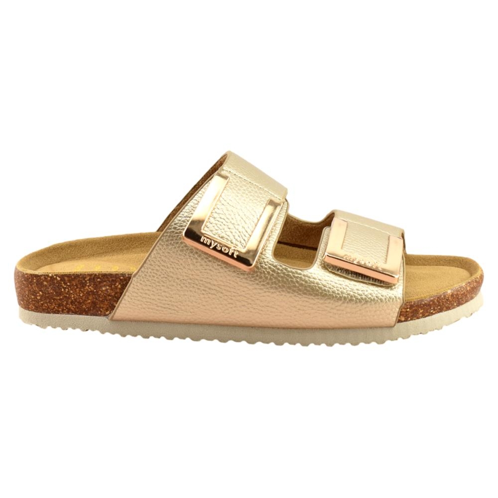 Las sandalias de Mysoft se caracterizan por su ergonomía, ligereza, flexibilidad, y por adaptarse en todo momento a la forma natural del pie proporcionando descanso y libertad de movimiento. Se fabrican con horma amplia que ofrece un calce ancho que no aprisiona.