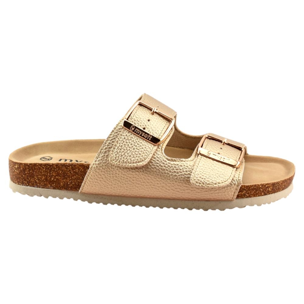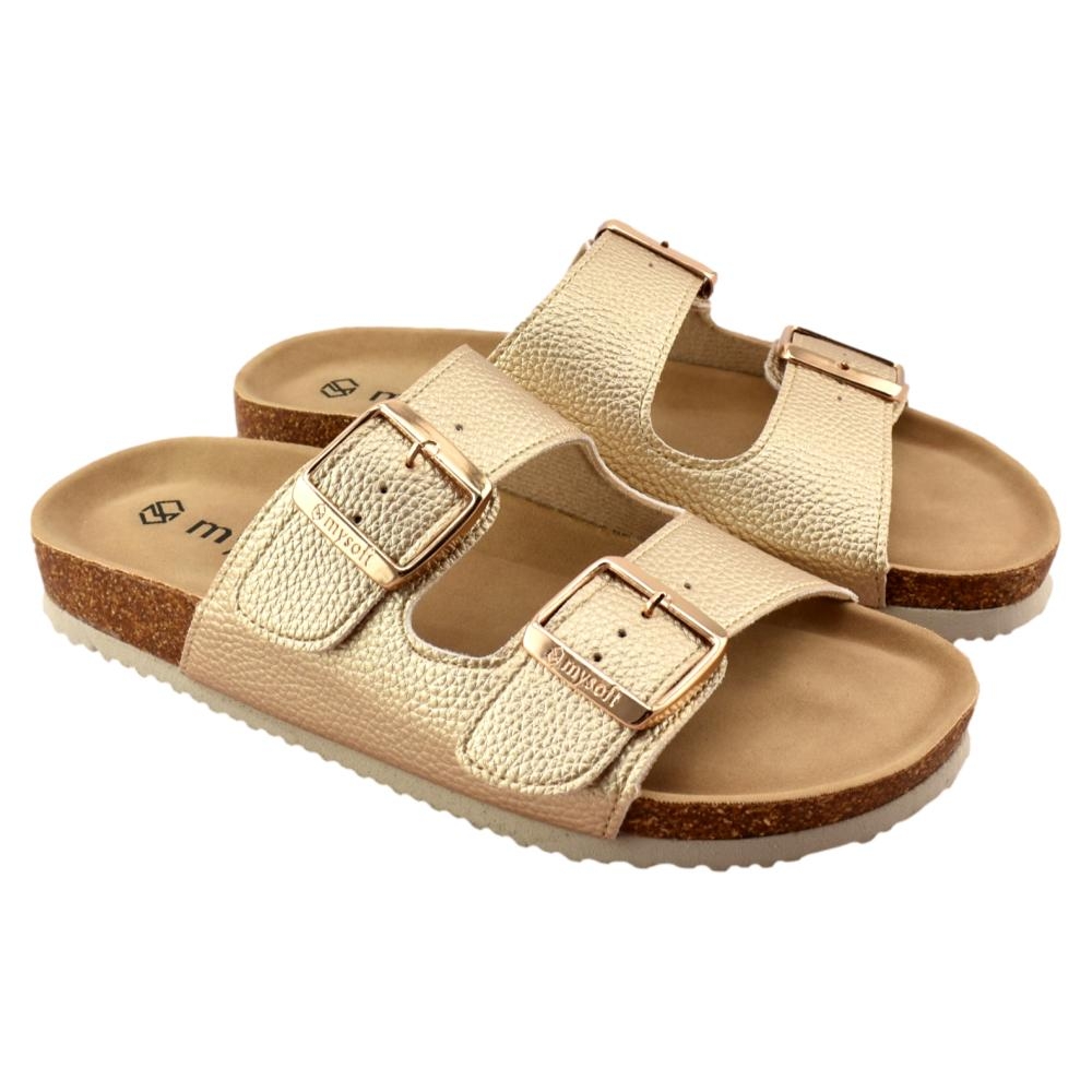 Las sandalias de Mysoft se caracterizan por su ergonomía, ligereza, flexibilidad, y por adaptarse en todo momento a la forma natural del pie proporcionando descanso y libertad de movimiento. Se fabrican con horma amplia que ofrece un calce ancho que no aprisiona.