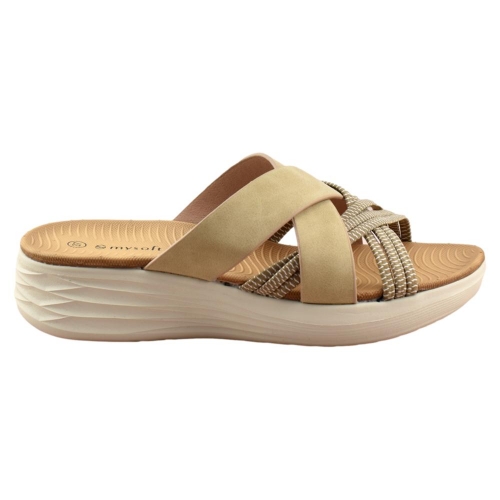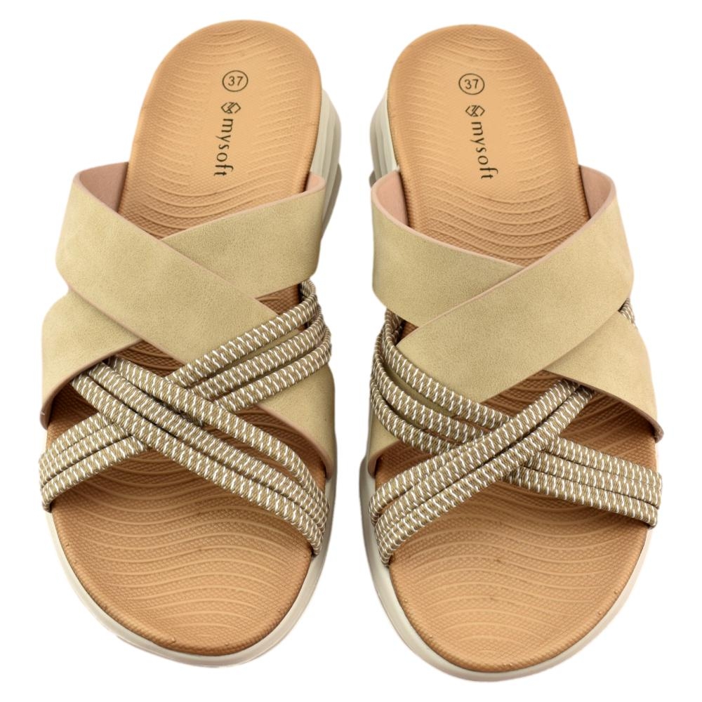 Las sandalias de Mysoft se caracterizan por su ergonomía, ligereza, flexibilidad, y por adaptarse en todo momento a la forma natural del pie proporcionando descanso y libertad de movimiento. Se fabrican con horma amplia que ofrece un calce ancho que no aprisiona.