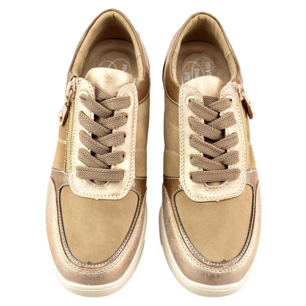 Estos zapatos de cordón y cremallera de la marca MySoft son la mezcla perfecta de elegancia y comodidad, ideales para el día a día o para ocasiones especiales. El acabado en colores beige les da un toque de distinción y modernidad, convirtiéndolos en una opción versátil para cualquier guardarropa.