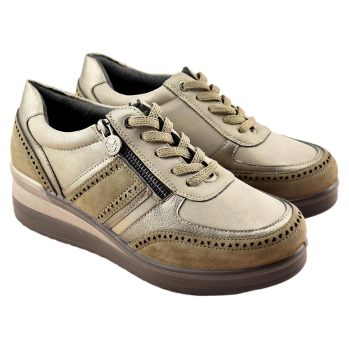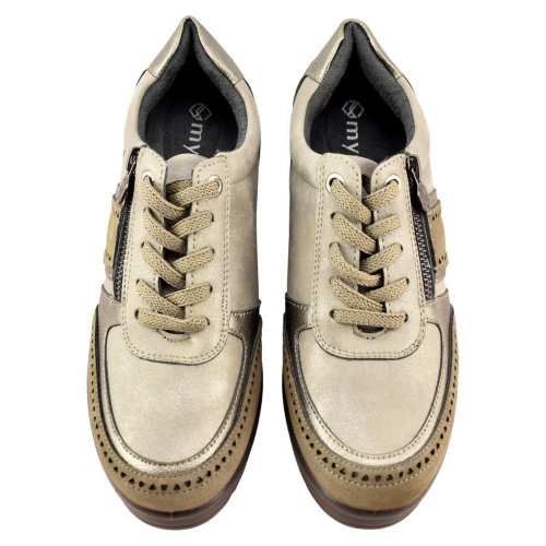 Estos zapatos de cordón y cremallera de la marca MySoft son la mezcla perfecta de elegancia y comodidad, ideales para el día a día o para ocasiones especiales. El acabado en colores kaki y metalizados les da un toque de distinción y modernidad, convirtiéndolos en una opción versátil para cualquier guardarropa.