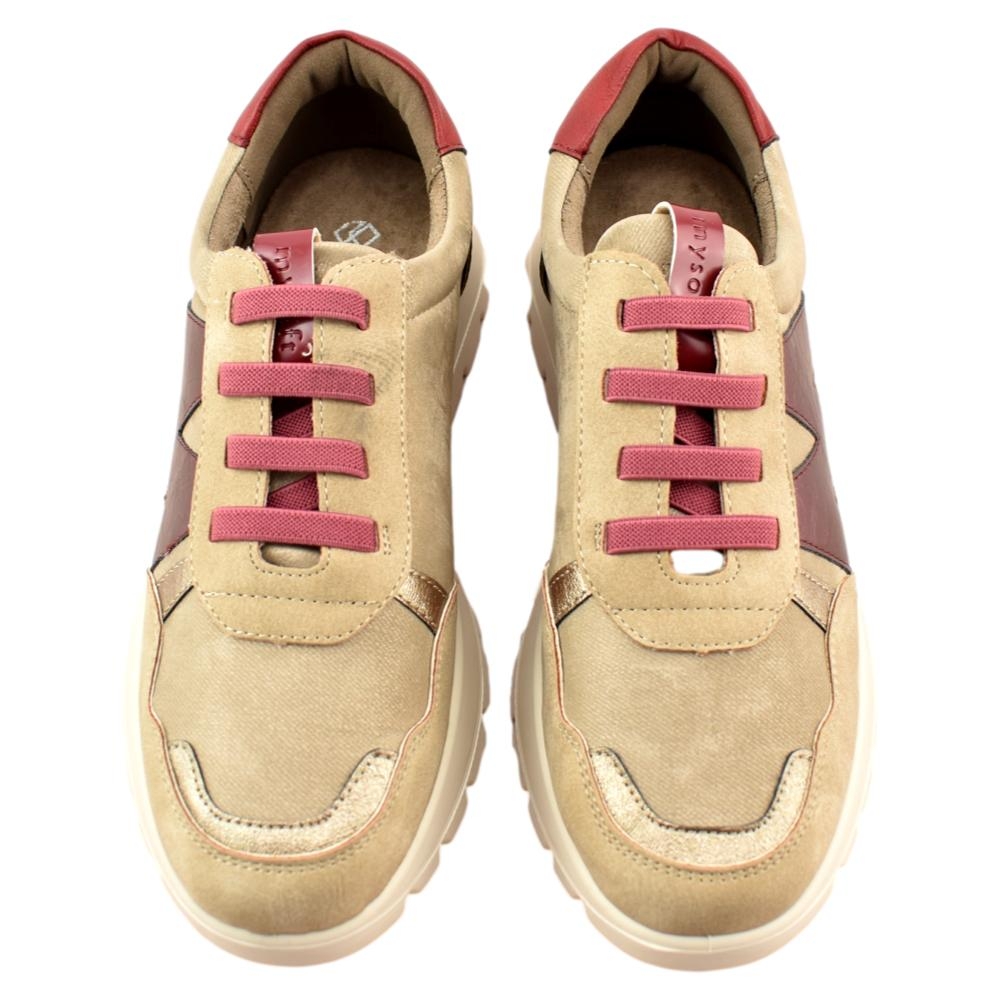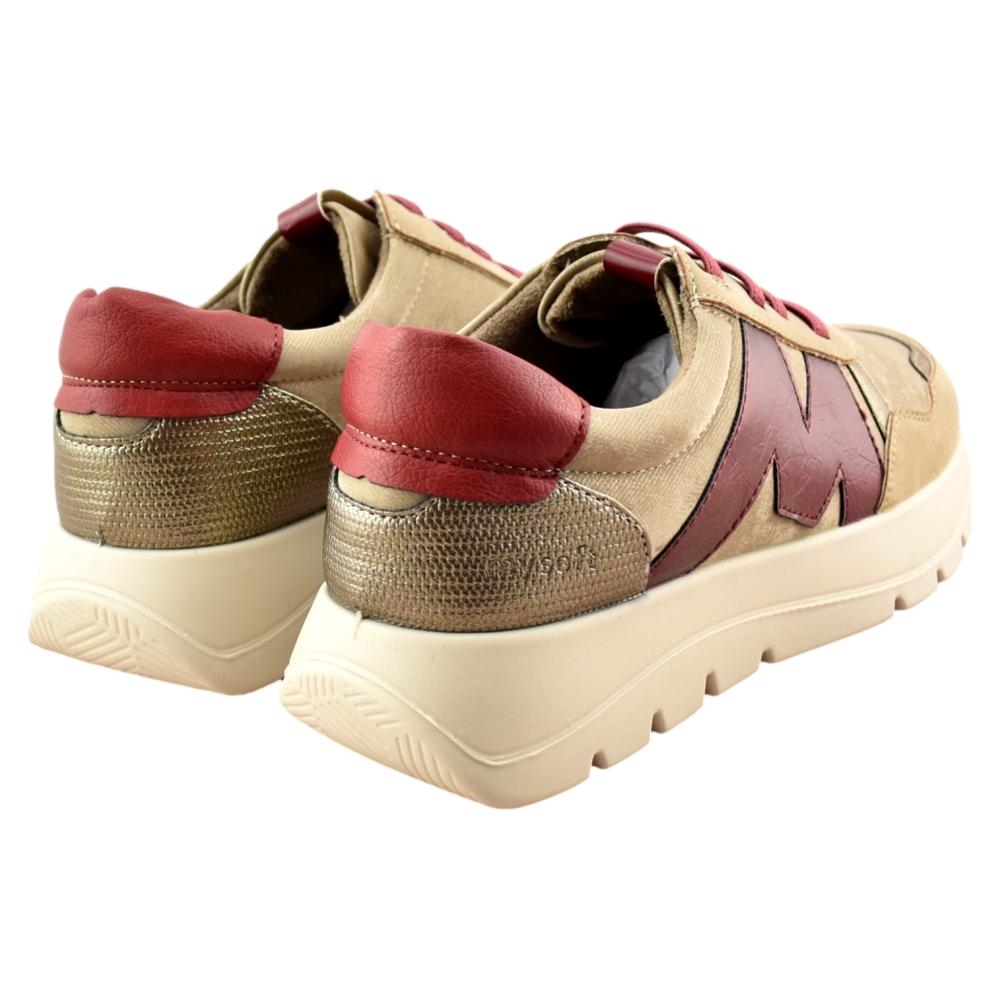 Zapatilla con plataforma de la marca Mysoft para mujer, realizado en material textil con refuerzos en piel sintética. Cierre mediante cordón elástico para facilitar el calce. Plantilla extraíble de "SoftGel", con nanopartículas de coloide que garantizan la comodidad desde la primera puesta además del memory foam para amortiguar y suavizar los impactos.